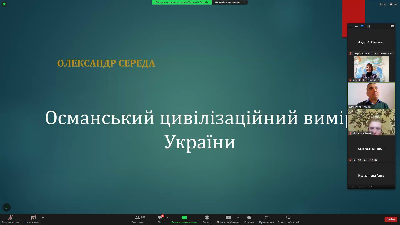 7 листопада 2023 року, на запрошення міжнародного проекту «SCIENCE AT RISK Emergency Office» в Південноукраїнському національному педагогічному університеті імені К. Д. Ушинського відбувся науковий семінар Олександра Середи «Османський цивілізаційний вимір України».