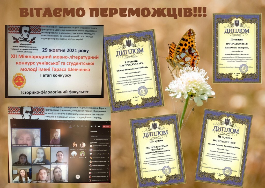 29 жовтня 2021 року відбувся І етап ХІІ Міжнародного мовно-літературного конкурсу імені Тараса Шевченка. У ньому взяли участь 20 студентів, серед них переможцями стали: