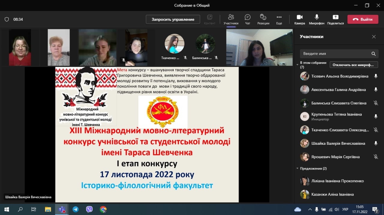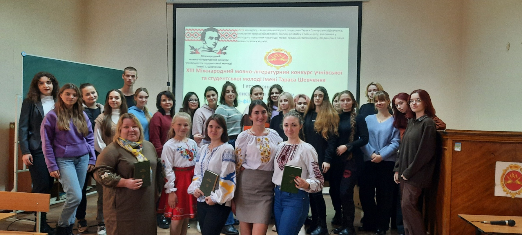 17 листопада відбувся перший етап ХІІІ Міжнародного мовно-літературного конкурсу учнівської та студентської молоді імені Тараса Шевченка. В урочистому відкритті взяли участь здобувачі й викладачі історико-філологічного факультету. Студенти першого курсу Ірина Лободенко, Анастасія Чучупака, Валерій Акімов, Олеся Кугут продекламували кращі поезії Тараса Шевченка. Студенти взяли участь у вікторині на знання лірики поета. Музичним подарунком для присутніх стала пісня про Кобзаря від чарівної гості заходу, учениці КМ «Біляївська мистецька школа» (керівник-Руденко О.В.) Марти Яцишиної.