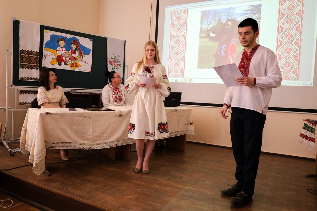 - Студенти-бакалаври філологи та історики старших курсів приготували філігранний проєкт про сучасне життя та вшанування нашої вишиванки не лише в Україні, а й у різних куточках світу. Валерія Швайка разом із Олексієм Малогою влаштували подорож, зачарували присутніх цікавими фактами, постатями різних національностей і соціальних статусів у вишитих сорочках і сукнях.