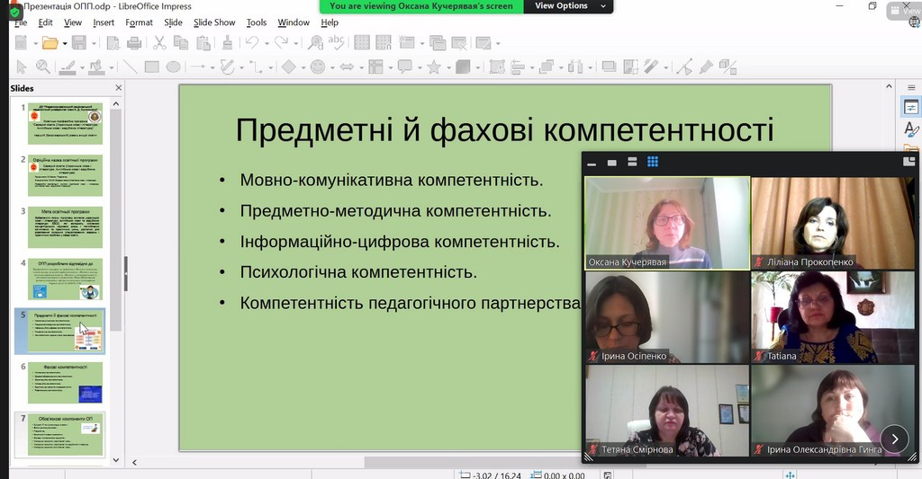 Під час зустрічі було розглянуто компетентнісні, кваліфікаційні й методичні складові освітньо-професійних програм «Середня освіта (Українська мова і література. Англійська мова і зарубіжна література)» для першого (бакалаврського) рівня вищої освіти (гарант доцент, к.пед.н. О. А. Кучерява) та «Середня освіта (Українська мова і література. Зарубіжна література)» для другого (магістерського) рівня вищої освіти (гарант професор, д.пед.н. О. А. Копусь). В обговоренні взяли участь директор Одеського ліцею «Лідер» І. С. Болгарина, директор Одеського ліцею № 13 Т. С. Смірнова, директор Одеського ліцею № 100 О. М. Паламарчук, які допомогли визначити пріоритети в розбудові загальної середньої освіти.