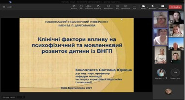 10 лютого 2024 р., була проведена гостьова лекція Коноплястої С.Ю. -доктора педагогічних наук, професор кафедри логопедії та логопсихології Українського державного університету імені Михайла Драгоманова за темою: «Клінічні фактори впливу на психофізичний та мовленнєвий розвиток дитини із вродженими незрощеннями губи та піднебіння (ВНГП)» з метою удосконалення та систематизації науково-теоретичних аспектів та наочно-практичних засобів корекційно-реабілітаційних напрямків, надання допомоги дітям з порушенням мовленнєвого розвитку, як ринолалія в рамках навчальної дисципліни Логопедія (Ринолалія) для здобувачів першого (бакалаврського) рівня вищої освіти 3 року навчання (денної та заочної форми) 016 Спеціальна освіта в онлайн-форматі.До лекції також долучились студенти Університету Ушинського 4 року навчання (заочної форми), 1 року навчання другого (магістерського) рівня вищої освіти (денної та заочної форми).