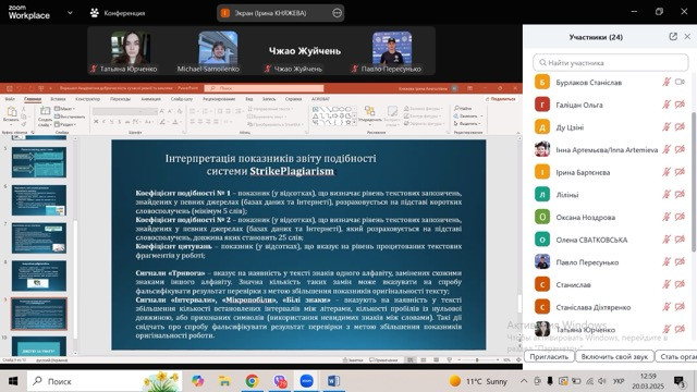 Захід став платформою для професійного обговорення та усвідомлення необхідності підтримки академічної доброчесності як основи якісної освіти і науки. Учасники висловили вдячність організаторам та спікеру за змістовну програму і корисні практичні поради.