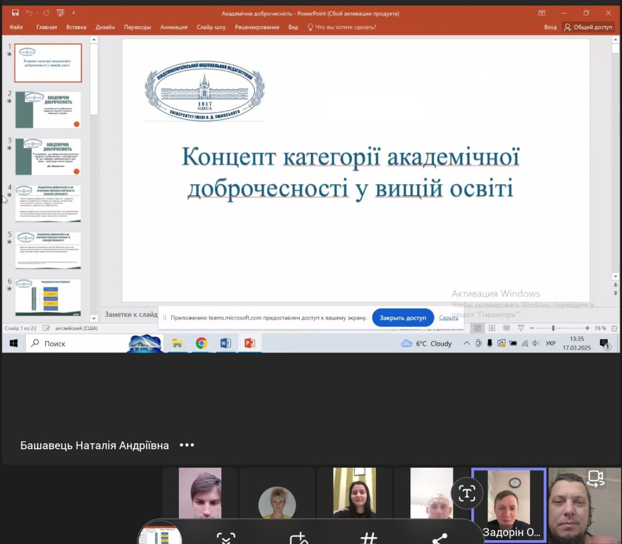20 березня 2025 року магістранти ОПП Середня освіта (Фізична культура) також долучилися до участі у воркшопі «Академічна доброчесність: сучасні реалії та виклики» який провела доктор педагогічних наук, професор, завідувач кафедри педагогіки Княжева І.А. Захід об’єднав здобувачів та науково-педагогічних працівників, які прагнуть дотримуватися високих стандартів наукової етики та якості освіти.