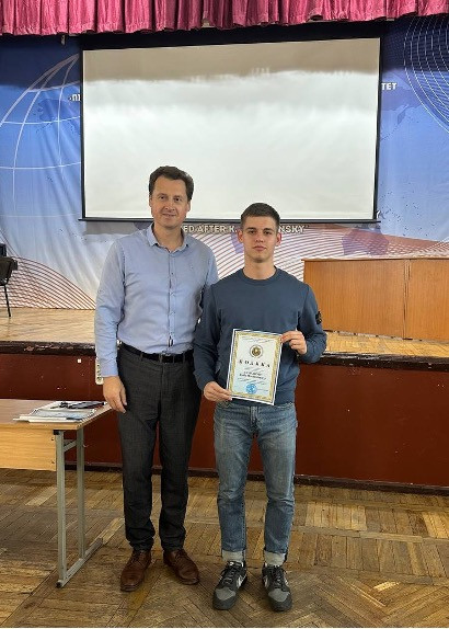 За вагомий внесок у розвиток наукового потенціалу університету та за високу громадську позицію Соколов Гліб, здобувач вищої освіти спеціальності «017 «Фізична культура і спорт», отримав Подяку від ректора Університету Ушинського.