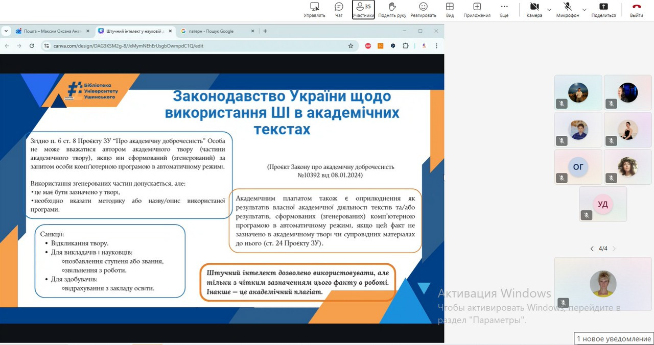 Лекція була спрямована на формування у здобувачів освіти та науковців усвідомленого підходу до використання інноваційних технологій у межах академічної культури, що базується на чесності, довірі та професійній відповідальності.