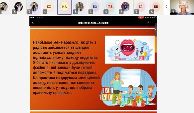 Під час звітної конференції здобувачі презентували фото- та відео- звіти, що були насичені практичними завданнями та яскравими матеріалами. Незважаючи на онлайн-формат проведення конференції, захід вразив своєю результативністю, а доповіді здобувачів – змістовністю, інформативністю, максимальним розкриттям етапів навчальної практики.
