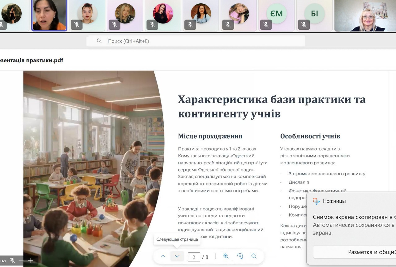 12 грудня 2025 року відбулася підсумкова конференція з навчальної практики (ознайомлювальної в закладах спеціальної та інклюзивної освіти) здобувачів вищої освіти 3 курсу заочної форми навчання освітньо-професійної програми «Спеціальна освіта (Логопедія)» зі спеціальності 016 Спеціальна освіта. Керівники практики, професор Г.Б. Соколова, професор О.І.Форостян та доцент кафедри спеціальної та інклюзивної освіти В.І. Галущенко.