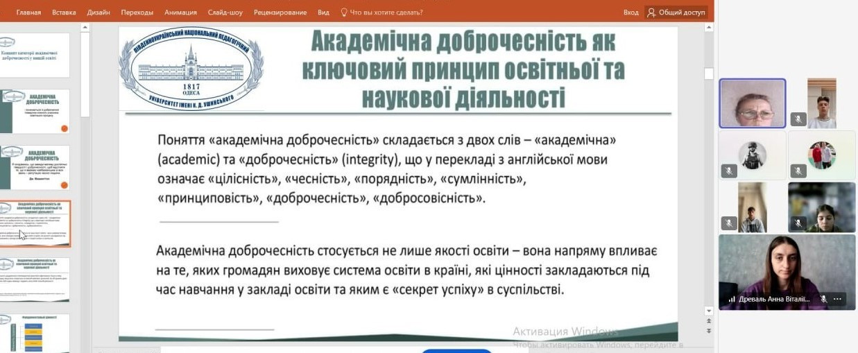 Загалом проведені заходи відзначилися високим рівнем зацікавленості здобувачів освіти, їх активною участю в обговореннях та готовністю впроваджувати принципи академічної доброчесності у власну освітню та наукову діяльність. Тиждень доброчесності став важливим кроком у зміцненні освітньої культури, утвердженні моральних цінностей, розвитку відповідальності та підвищенні якості освітнього процесу в Університеті Ушинського.