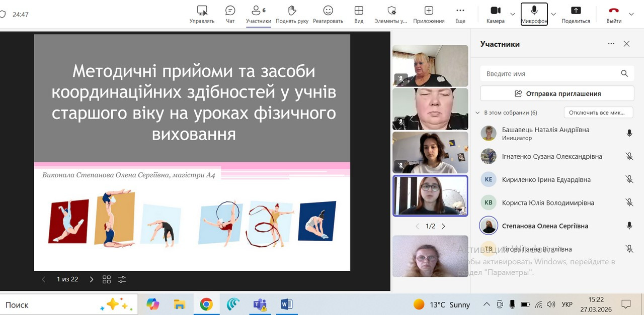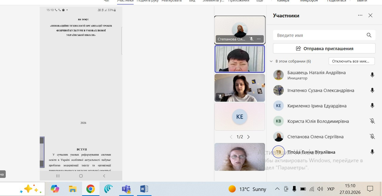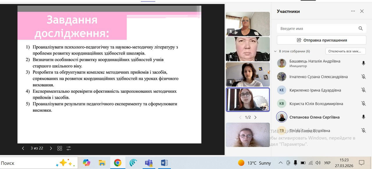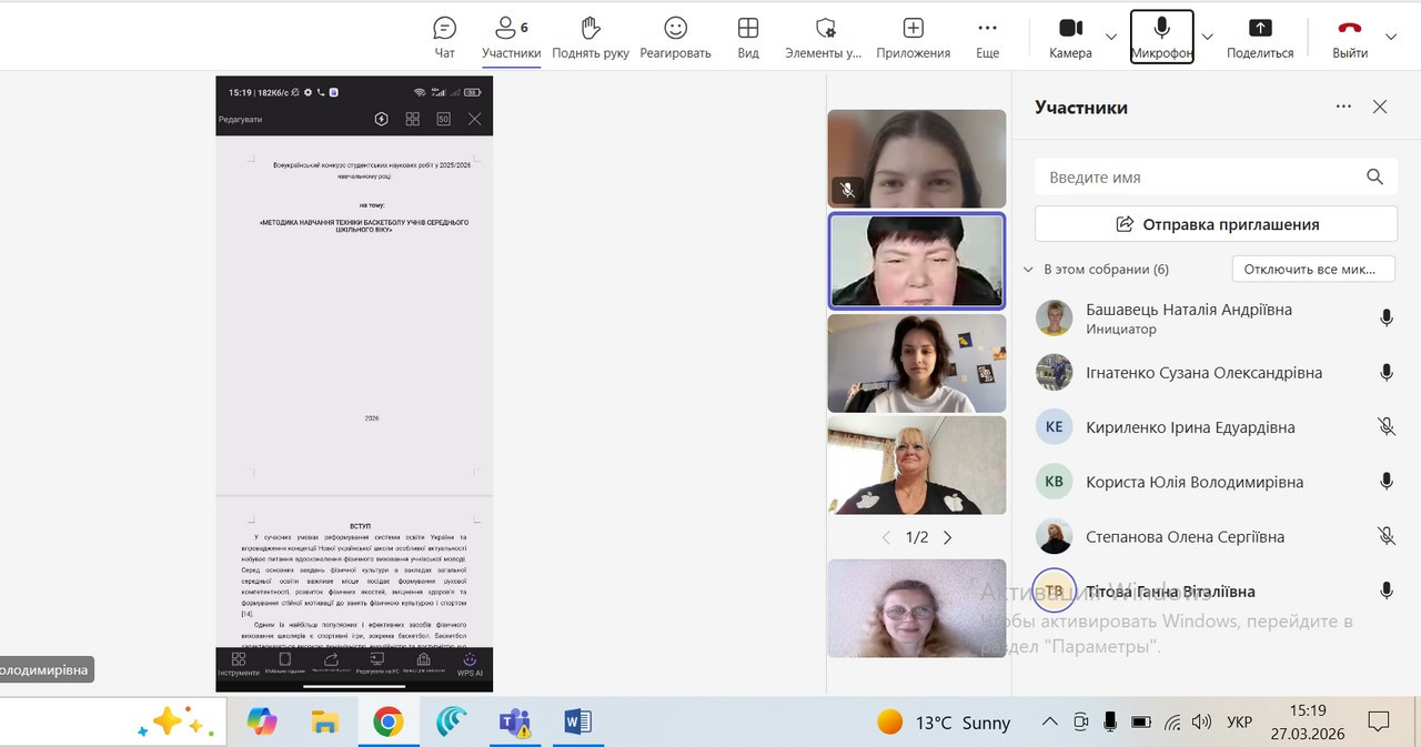 27 березня 2026 року проведено перший тур Всеукраїнського конкурсу студентських наукових робіт зі спеціальності «Середня освіта (Фізична культура)» з дотриманням умов безпеки на виконання наказу від 20 січня 2026 року № 13-нд «Про проведення першого туру Всеукраїнського конкурсу студентських наукових робіт з галузей знань і спеціальностей у 2025/2026 навчальному році».