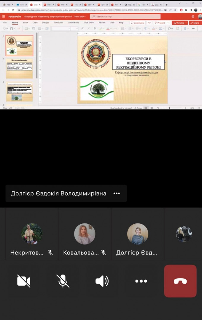 16 березня 2023 року співробітниками кафедри теорії і методики фізичної культури та спортивних дисциплін навчально-наукового інституту фізичної культури спорту та реабілітації була проведена презентація вибіркових дисциплін на 2023-24 навчальний рік. Викладачі кафедри представили анонси та презентації наступних вибіркових компонентів освітньо-професійних програм за спеціальностями 014 Середня освіта (Фізична культура) та 017 Фізична культура і спорт першого бакалаврського та другого магістерського рівнів вищої освіти: «Теорія і методика спортивно-масової роботи», «Фізичне виховання у спеціальних медичних групах», «Теорія і практика фітнесу», «Фітнес-програми аеробної спрямованості», «Фітнес-програми силової спрямованості», «Облік і педагогічний контроль в спортивно-масовій роботі», «Рекреаційні технології», «Тренажери у фізичній культурі і спорті», «Технології підготовки у циклічних видах спорту», «Методики тренування в обраному виді спорту», «Багаторічна підготовка юних спортсменів», «Теорія спорту та сучасні технології спортивного тренування», «Технології створення фізкультурно-спортивних організацій», «Теорія і практика спортивно-оздоровчого туризму», «Методики туристичної діяльності», «Екоресурси Південного регіону», «Економіка туристичного підприємства», «Здоров’язбережувальні технології у закладі середньої освіти», «Основи християнської етики», «Основи морально-етичного виховання», «Академічна доброчесність у закладі освіти».