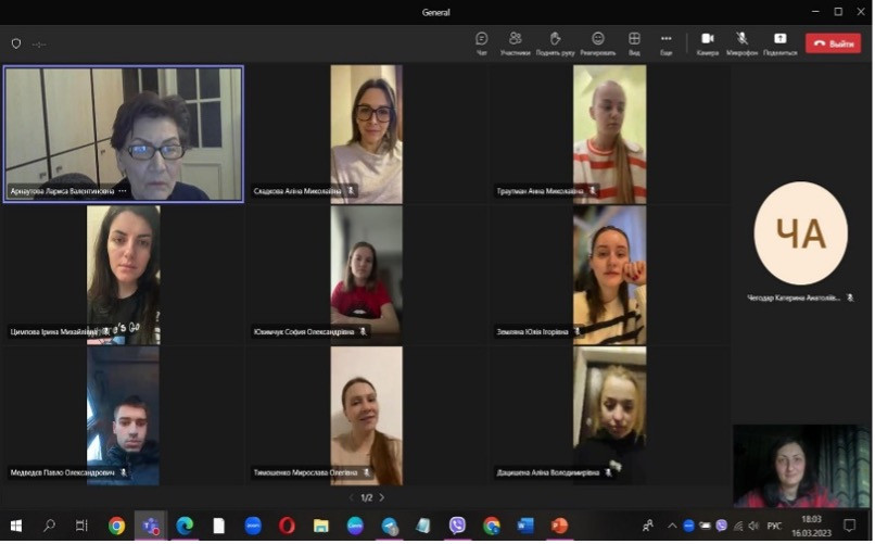 Зі студентами другого (магістерського) рівнів спеціальності 016 «Спеціальна освіта» 16 березня 2023 р. куратором групи доц. Арнаутова Л.В. була проведена кураторська година.