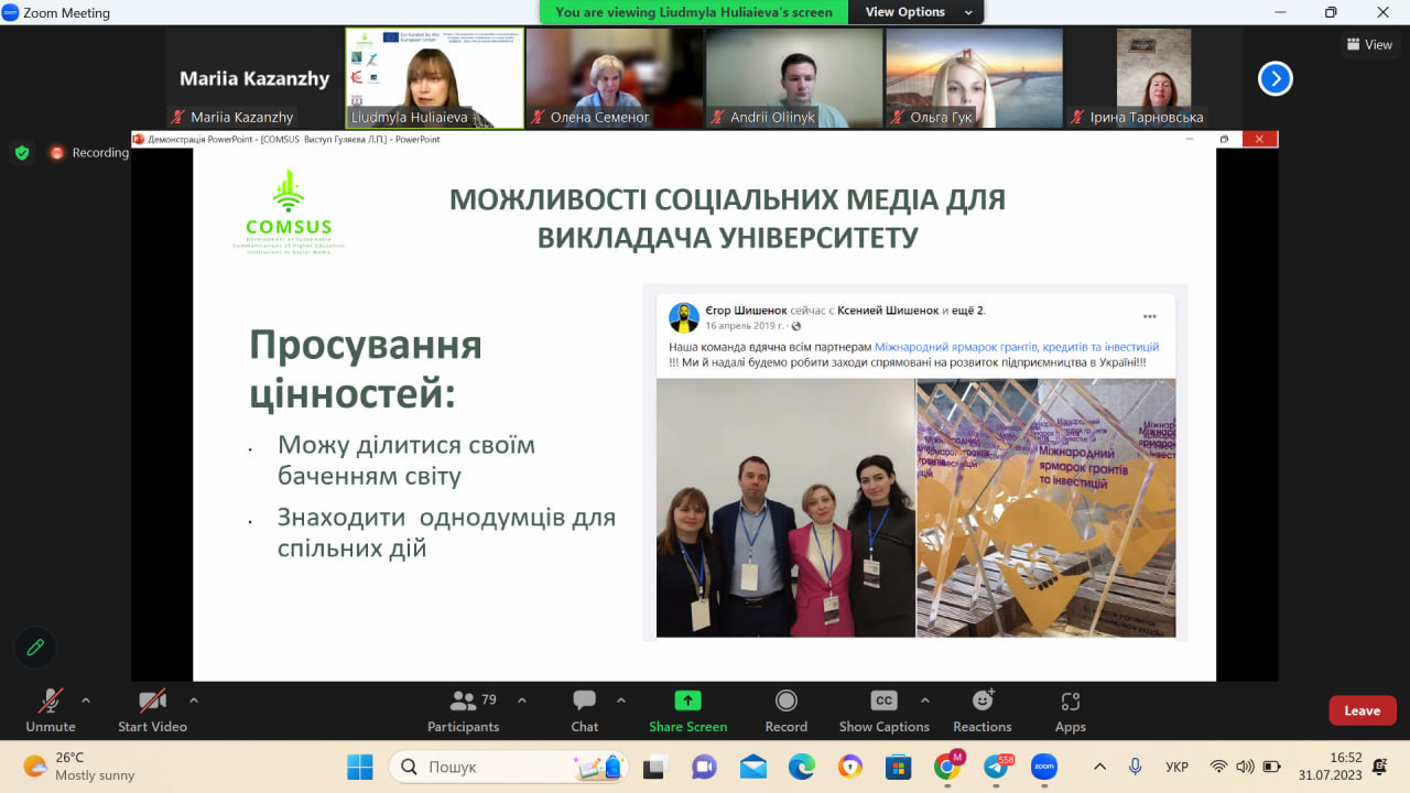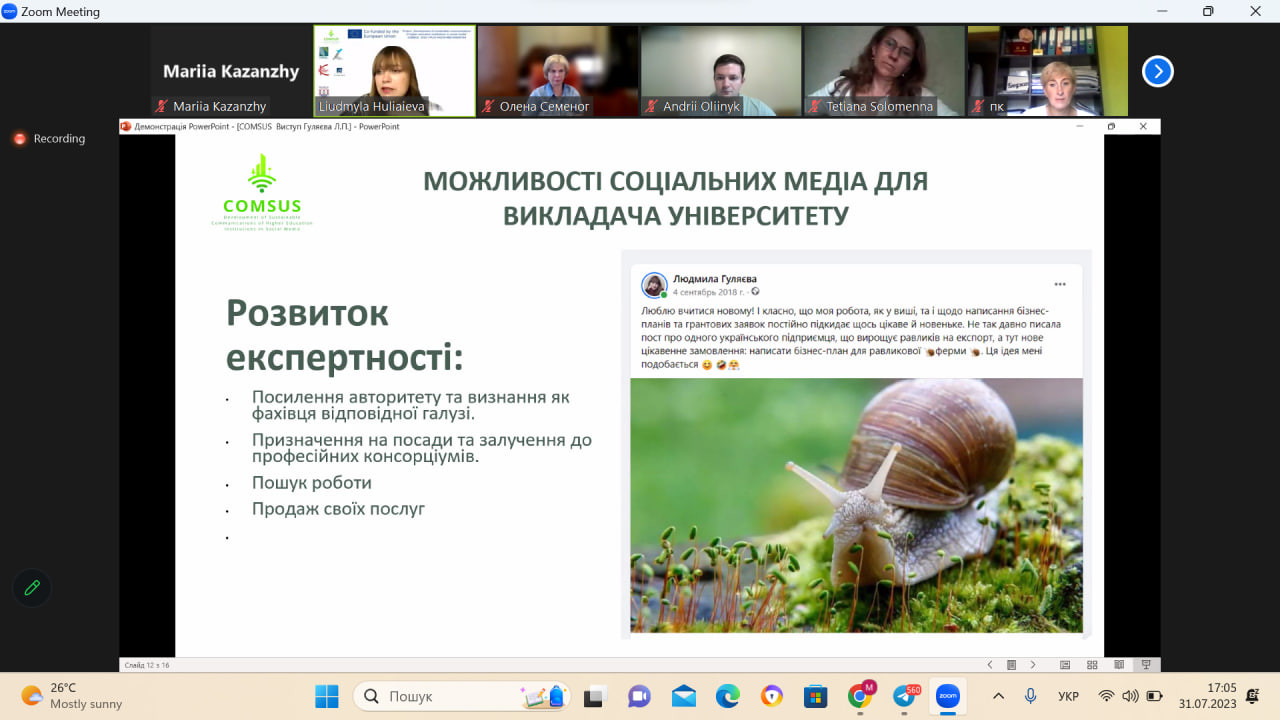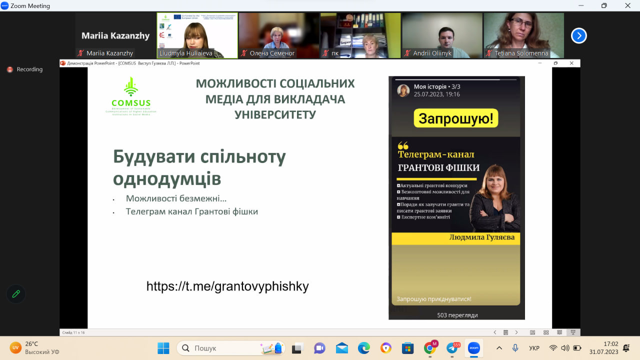 31 липня науково-педагогічні працівники ОНП Психологія долучилися до міжнародної онлайн-програми підвищення кваліфікації викладачів ЗВО «Сила соціальних мереж у професійному розвитку викладачів університетів: особистий бренд, інструменти для освітніх продуктів, просування цінностей сталого розвитку» (180 годин).