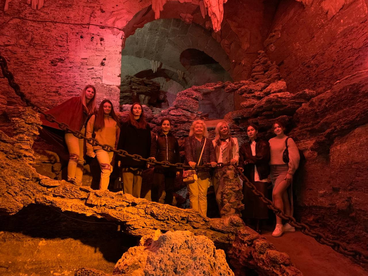 Мали задоволення познайомитись з великою виставкою живопису Марґіт та Романа Сельських «Сонце заходу», яка відкрилась 12 жовтня 2023 року. Ця виставка надала можливість побачити яскраві полотна західноукраїнського мистецтва ХХ століття. Також надзвичайно цікавою була екскурсія в грот Одеського художнього музею, – це красива підземна галерея, яка імітує природну печеру з сталактитами, з фонтаном посередині. На екскурсії дізналися цікаві факти з історії будівництва розкішного палацу Ольги Потоцької, створення в ньому музею витончених мистецтв, унікальної рукотворної печери, тощо. Захід сприяв розвитку естетичного, творчого мислення здобувачів та подарував натхнення.