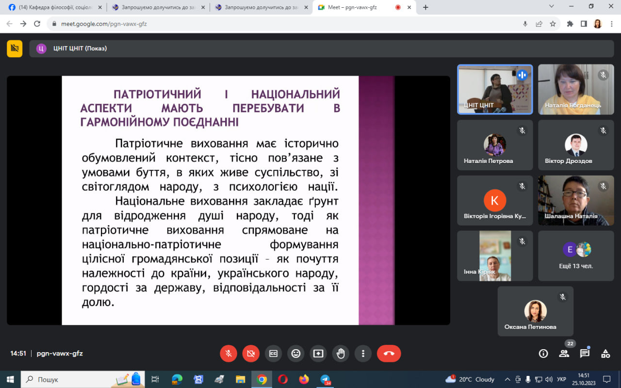 Громадянська освіта та національно-патріотичне виховання є важливою складовою підготовки сучасного фахівця, особливо в наш час. Сьогодні науково-педагогічні працівники, аспіранти та студенти, члени студентського наукового гуртка «Південноукраїнські наукові студії» мали можливість долучитись до наукового семінару-інтенсиву «Національна ідея як єднальний фактор у вихованні патріотизму: регіональний досвід», який проведений на базі Ізмаїльського державного гуманітарного університету в змішаному форматі.