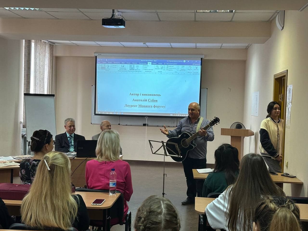 26 жовтня 2023 року на запрошення проф. Олега Долженкова (кафедра освітнього менеджменту та публічного управління) здобувачі першого (бакалаврського) рівня вищої освіти ОПП «Менеджмент соціокультурної діяльності», Гарант ОПП проф. Олена Лісеєнко та член групи забезпечення ОПП проф. Оксана Петінова долучилися до зустрічі зі стейкхолдером – головою Одеської регіональної організації Національної спілки журналістів Юрієм Работіним.Говорили про проблеми формування позитивного іміджу України у контексті відповіді на сучасні виклики, зміни стереотипів; дискутували щодо питань організації соціокультурної діяльності в сучасних трансформаційних умовах, познайомились з особливостями організації та проведення Всеукраїнських мовних форумів. Гості презентували збірки віршів, а також книги про відомих українців – діячів культури, освіти та науки: Василя Симоненка, Миколу Леонтовича, Кузьму Скрябіна та інших; розповідали про особливості роботи журналістів в умовах війни. На завершення виступив автор та виконавець українських пісень, талановитий житель Березівської громади Анатолій Сєбов. Зустріч була надзвичайно цікавою та актуальною для майбутніх фахівців в галузі культури та мистецтва.