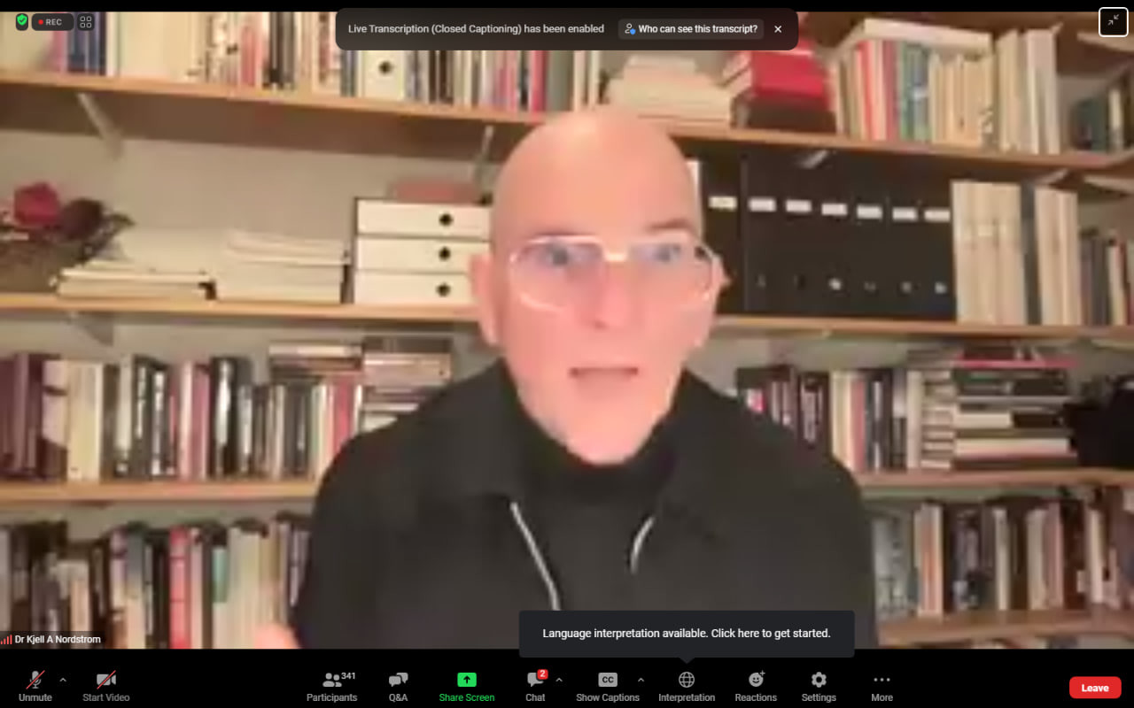 «New organisational forms and the bodyless leadership» від всесвітньо відомого шведського економіста, письменника та спікера – KJELL NORDSTROM. Кризи, нульовий рік… історичний момент з радикальними наслідками не за горами. Як пандемія, кліматична криза та війна в Україні змінюють наші суспільства, організації та й нас самих?Які ключові фактори успіху нашої нової ери? Які моделі майбутнього життя? Як кожен із нас може визначити можливості, розвинути свої лідерські навички та скористатися безпрецедентним імпульсом сьогодення для трансформації? Ці та інші непрості запитання підіймались на захоплюючій лекції, до якої доєдналися понад 390 учасників, серед яких аспіранти ОНП «Філософія» та Гарант ОНП проф. Оксана Петінова. Актуальні питання, філософське осмислення, роздуми над сенсом життя та перспективами розвитку людства перебували в центрі обговорення учасників.