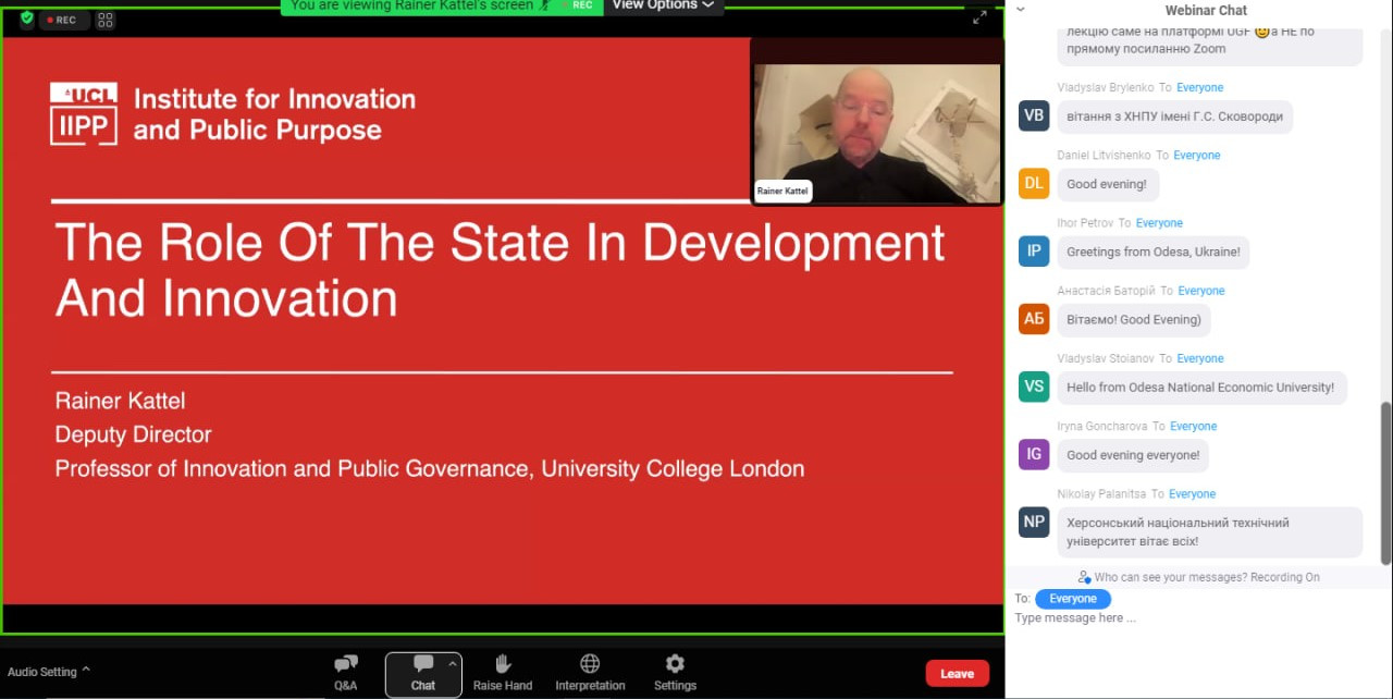 Студенти ОПП «Менеджмент соціокультурної діяльності» та аспіранти ОНП «Філософія» мали змогу взяти участь в обговоренні актуальної теми, яку висвітлив професор, заступник директора Інституту інновацій та суспільного призначення (IIPP) Університетського коледжу Лондона (UCL) Райнер Каттел.Захід організований UGF. Співпраця між державою та інноваційним сектором забезпечує стійкий розвиток сучасного суспільства та забезпечує науковий прогрес. Державна підтримка досліджень дозволяє науці розширювати свої горизонти та вирішувати складні виклики. Інвестиції у науку допомагають створювати нові технології, що потім можуть бути впроваджені в реальному секторі економіки. Держава також відіграє ключову роль у створенні інфраструктури для інновацій. Вона має важливе завдання визначення стратегічних напрямків розвитку та створення умов для конкуренції на ринку. Регулювання та надання податкових пільг для інноваційних підприємств можуть стимулювати їхній розвиток та прискорити впровадження новаторських рішень. Ці та інші питання розглядались на лекції «The Role Of The State In Development And Innovation».