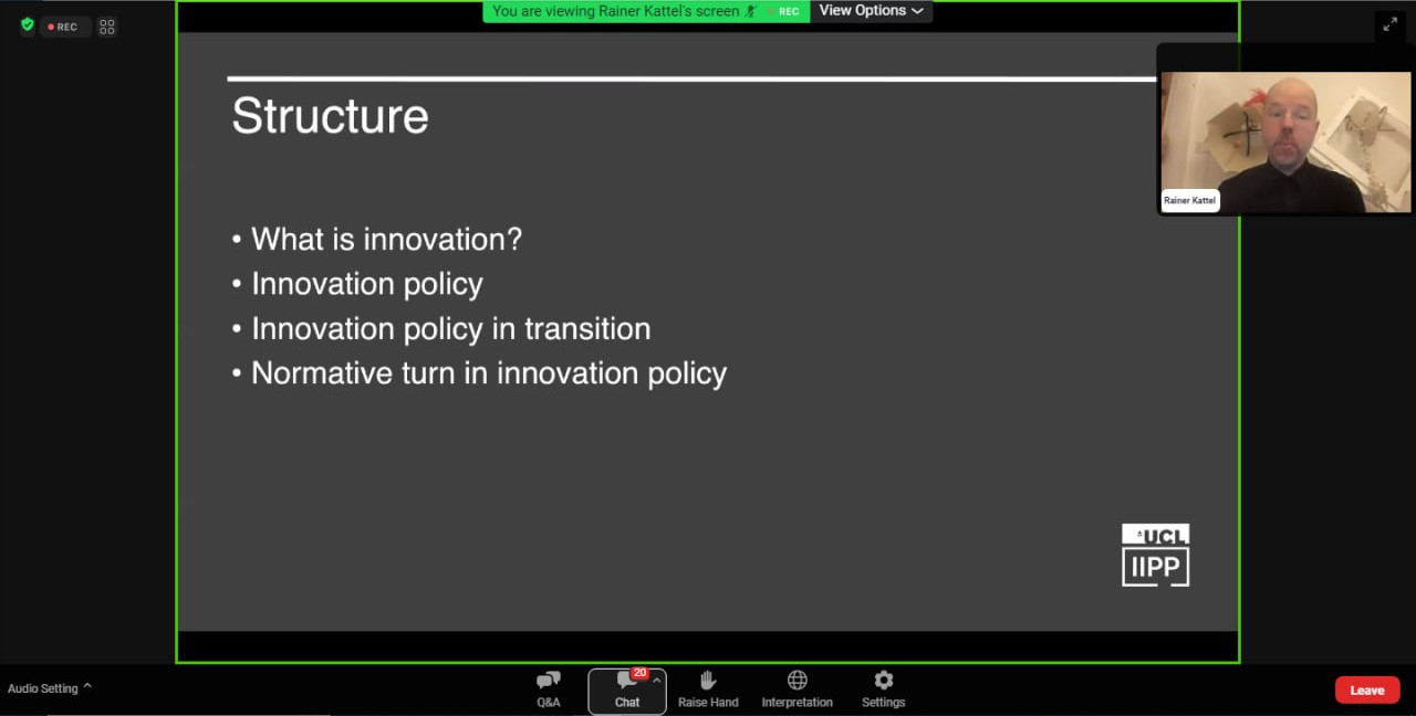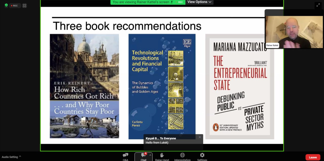 Студенти ОПП «Менеджмент соціокультурної діяльності» та аспіранти ОНП «Філософія» мали змогу взяти участь в обговоренні актуальної теми, яку висвітлив професор, заступник директора Інституту інновацій та суспільного призначення (IIPP) Університетського коледжу Лондона (UCL) Райнер Каттел.