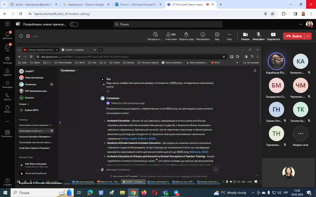 Штучний інтелект увірвався в наше життя з відкриттям доступу до сервісу ChatGPT ще у листопаді 2022 року. Дискусійним залишається питання про роль ШІ в розвитку сучасної освіти.Серед актуальних проблем, що опинились в центрі філософського осмислення – Homo virtualis як продукт цифрової культури та Homo digitalis як запит на нову конфігурацію індивідуальності. Аспіранти ОНП «Філософія» 2 року навчання в межах навчального курсу «Сучасна людина – площини філософської рефлексії» та студенти спеціальностей «Менеджмент соціокультурної діяльності» та «Початкова освіта», члени студентського наукового гуртка «Південноукраїнські наукові студії» (викладач проф. Петінова О. Б.) 29 лютого 2024 року відвідали майстер-клас «GPT-store. ШІ-сервіси в навчанні», що проведений в Університеті Ушинського. Спікери – завідувач навчальної лабораторії штучного інтелекту та робототехнічних систем В’ячеслав Корабльов та здобувач освіти другого (магістерського рівня Навчально-наукового інституту природничо-математичних наук, інформатики та менеджменту Віктор Корабльов. Захід сприяв відпрацюванню цифрових навичок здобувачів.