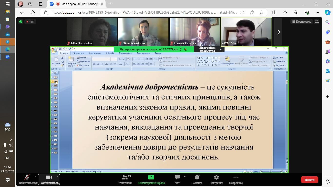 29 березня 2024 року продуктивна дискусія у дискурсі філософії об’єднала студентів, аспірантів різних спеціальностей, викладачів Університету Ушинського та ЗВО-партнерів, зокрема НТУ «Дніпровська політехніка», НУ «Чернігівська політехніка» навколо актуальних питань академічної доброчесності.