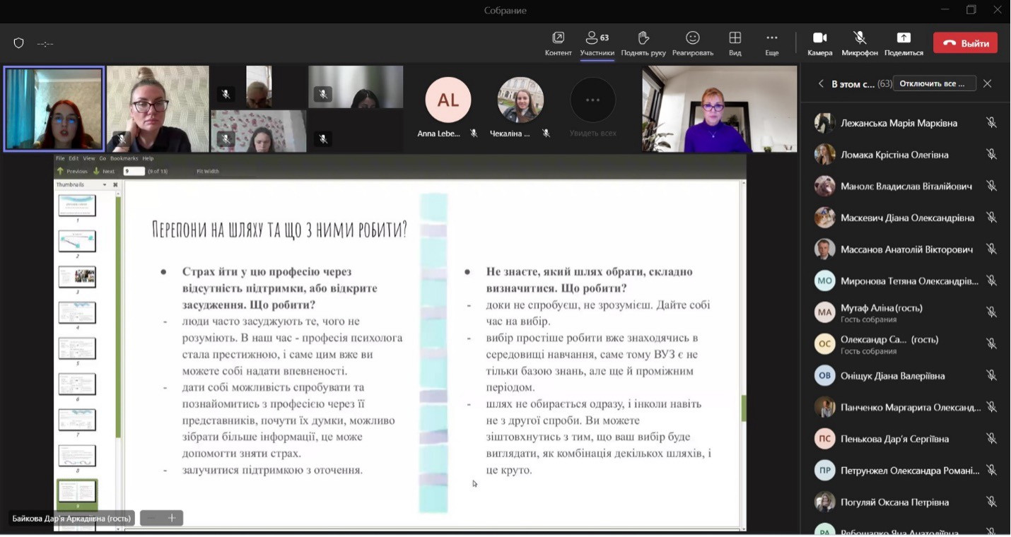 Професійний шлях спікера вебінару, її особистий досвід просування у професії зацікавив здобувачів і викликав жваву дискусію