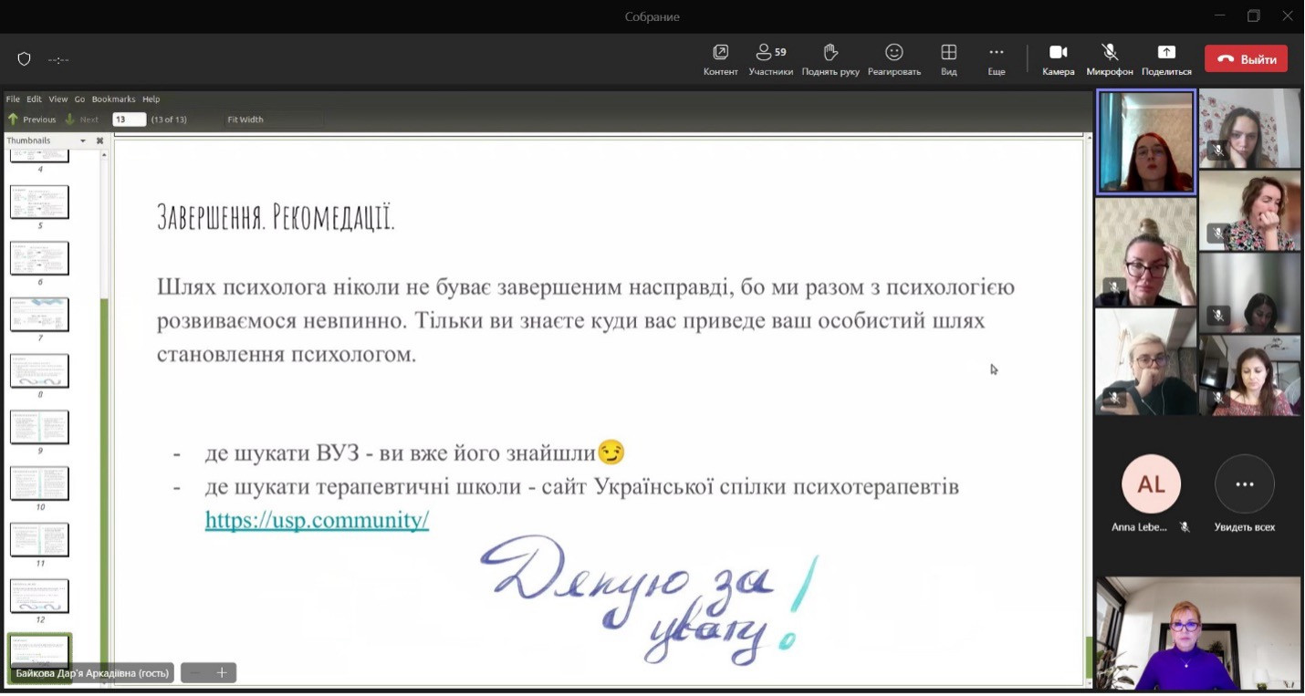Щиро вдячні Дар'ї Байковій за зустріч, бажаємо їй подальших успіхів у професійній діяльності.