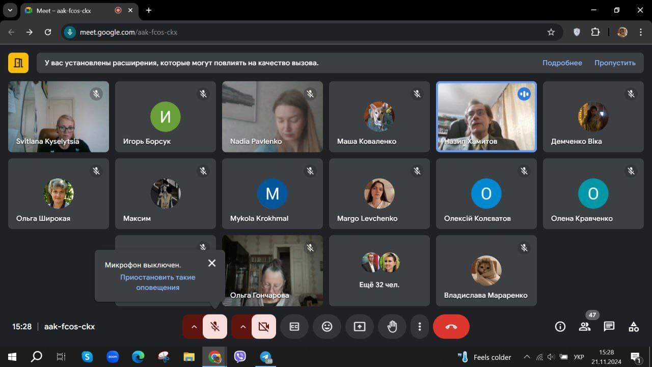 На запрошення кафедри філософії і суспільних наук НУ «Чернігівська політехніка» (ЗВО-партнер) з нагоди Всесвітнього дня філософії Гарант ОНП «Філософія» проф. Оксана Петінова, член робочої групи проф. Зоя Атаманюк, здобувачі третього (освітньо-наукового) рівня вищої освіти ОНП «Філософія» та ОНП «Професійна освіта», докторанти кафедри Ольга Гончарова та Наталія Рибка, здобувачі першого (бакалаврського) рівня вищої освіти спеціальності 013 «Початкова освіта» (12,13,14 групи) та аспіранти різних спеціальностей Міжнародного гуманітарного університету (ЗВО-партнер) долучилися до публічної лекції члена-кореспондента НАН України, почесного професора НУ «Чернігівська політехніка», доктора філософських наук, професора Назіпа Хамітова.