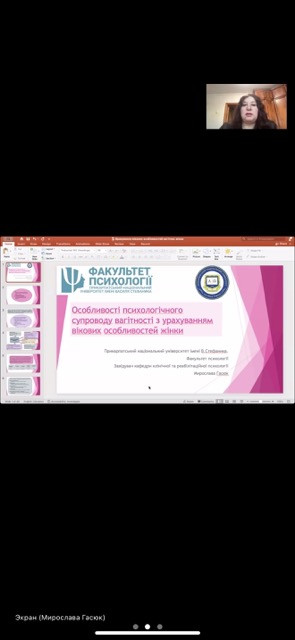27.01.2025р. в межах співпраці між кафедрою психіатрії, медичної та спеціальної психології ДЗ «ПНПУ ім. К.Д.Ушинського» та кафедрою клінічної та реабілітаційної психології Прикарпатського національного університету ім. Василя Стефаніка відбулася гостьова лекція завідувачки кафедри клінічної та реабілітаційної психології Прикарпатського національного університету ім. Василя Стефаніка Гасюк Мирослави Богданівни.