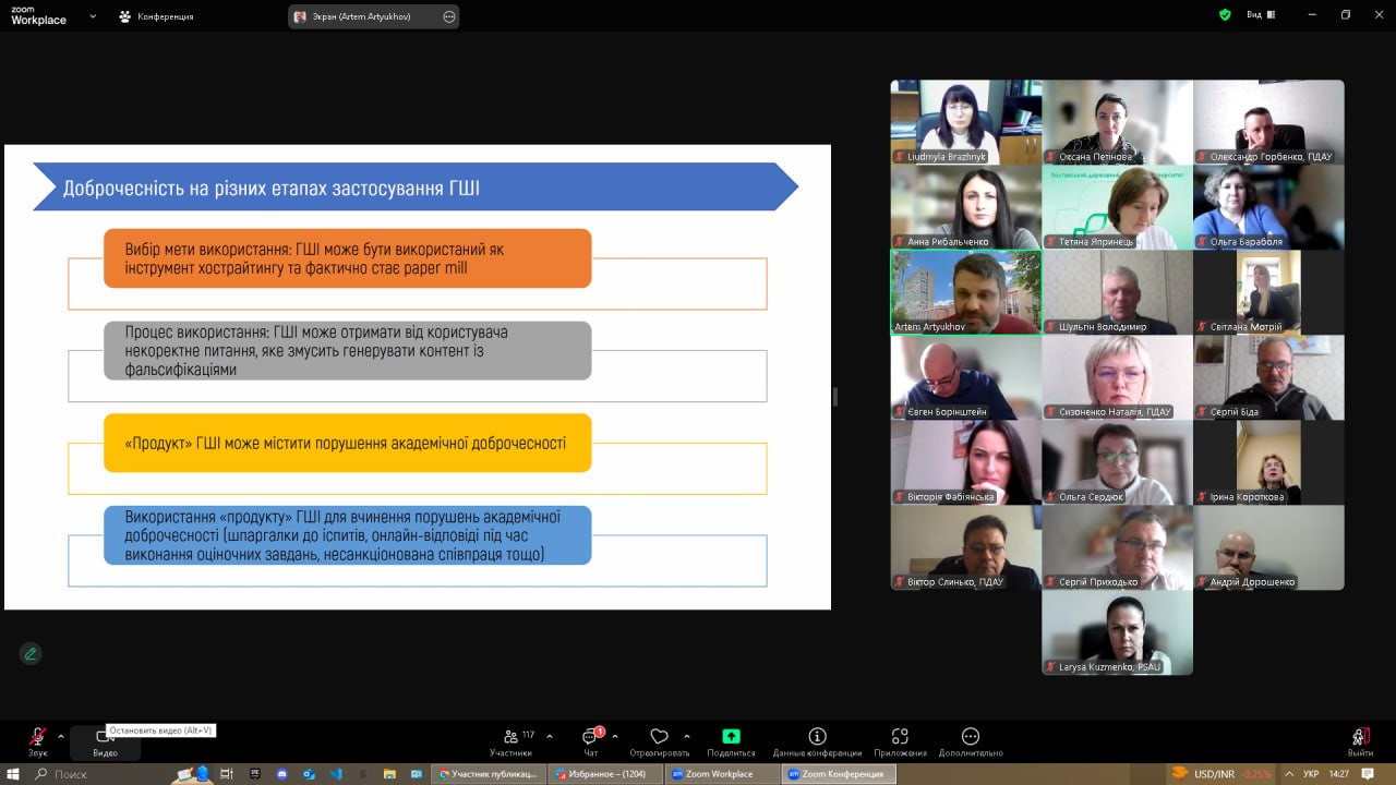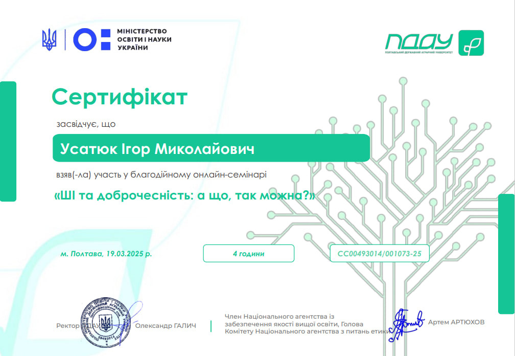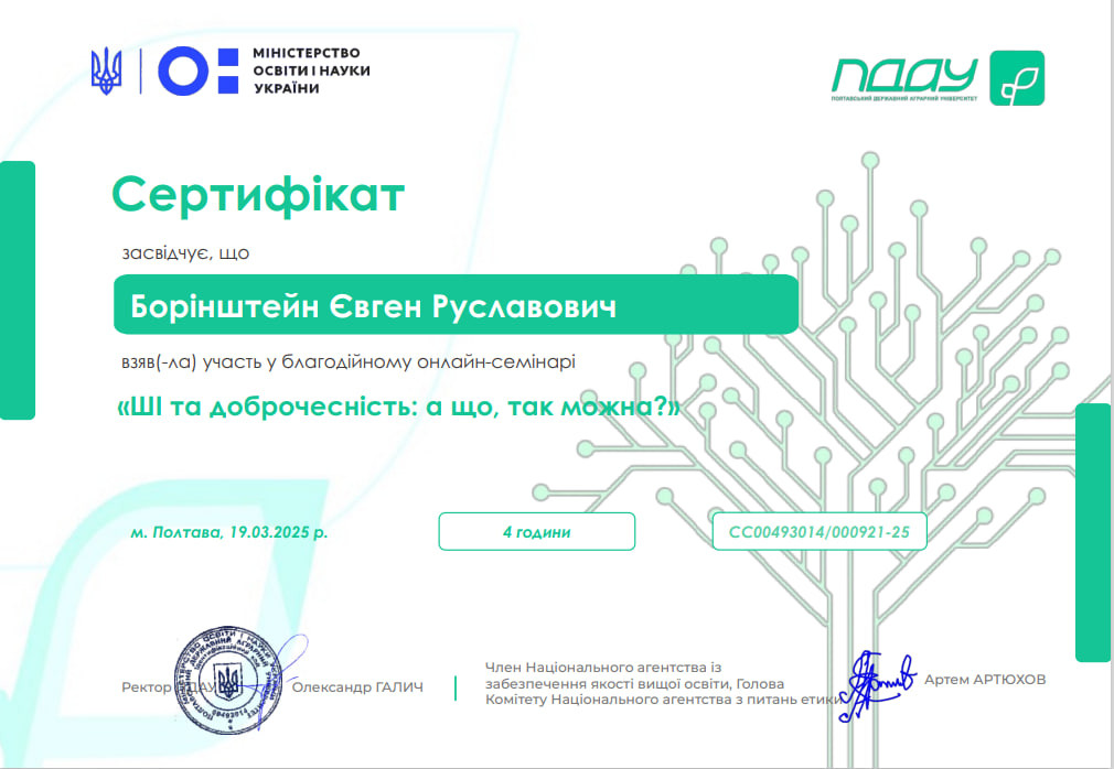 19 березня 2025 року відбувся благодійний онлайн-семінар «ШІ та доброчесність: а що, так можна?», який об’єднав усіх, хто цікавиться викликами та можливостями використання штучного інтелекту в освіті та науці та бажає допомогти ЗСУ.