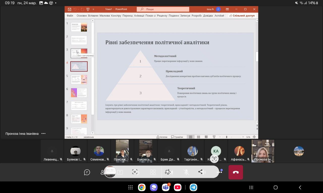 Запрошена лекторка детально розкрила роль соціологічних досліджень у сучасному політичному консалтингу, показавши, як дані соціології допомагають визначати суспільні настрої, прогнозувати електоральні тенденції та ухвалювати стратегічні політичні рішення. Особливий інтерес викликали приклади реальних кейсів, що продемонстрували ефективність методик у виборчих кампаніях, аналітиці політичних ризиків та розробці політичних стратегій.