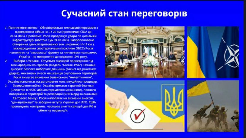Ольга ПЕШТЄРЄВА розкрила формування принципів, стратегій та прийомів Кремлівської школи переговорів. До основних елементів цієї школи переговорів відноситься: висування завищених вимог, імітація непохитності, створення ілюзії обмеженого мандату, використання демонстрації сили, навмисне ігнорування компромісних пропозицій, готовність до зриву переговорів. Спікерка проаналізувала багато кейсів переговорів та звернула увагу на застосування, наприклад, тактики затягування переговорів: у період з 2014 р. Росія роками затягувала будь-які реальні переговори, імітуючи готовність до діалогу. Це давало їй час для військового зміцнення, пропагандистським діям з дестабілізації України. Один із ключових прийомів кремлівської школи переговорів — це формування альтернативної реальності, тобто створення власного наративу, який може суперечити фактам, але вигідний для сторони, яка веде переговори. Російські представники можуть прямо заперечувати очевидні факти, навіть коли докази вже наявні (наприклад, заперечення присутності російських військ у Криму в 2014 році, хоча вони вже були там без розпізнавальних знаків). Спікерка також розглянула маніпуляції під час мирних переговорів (лютий-березень 2022 року) : затягування часу та переговори як прикриття для воєнних дій. Сьогодні один із головних методів Кремля — розкол єдності Заходу через заклики до "миру за будь-яку ціну. Це створює політичний тиск на західні уряди та дає аргумент тим, хто виступає за зменшення підтримки Києва. У висновку спікерка пояснила, що «миротворчі ініціативи» Росії є пасткою для України: жодна з них не передбачає відновлення територіальної цілісності України.