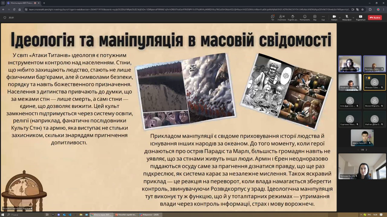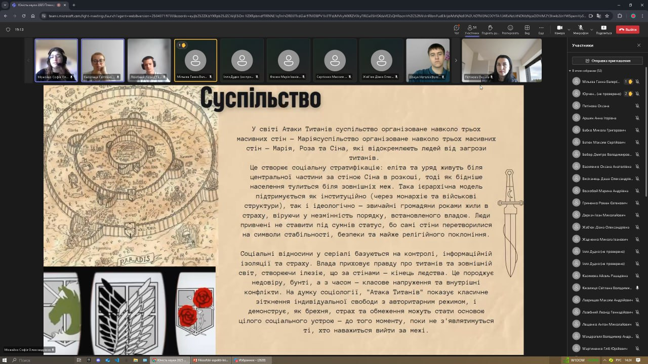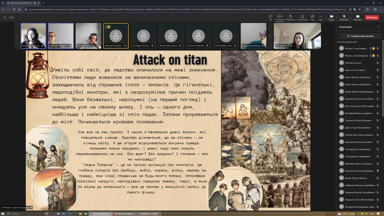 ✨ Софію Можейко, 4 курс («Огляд соціального становища всесвіту “Атаки титанів”»);