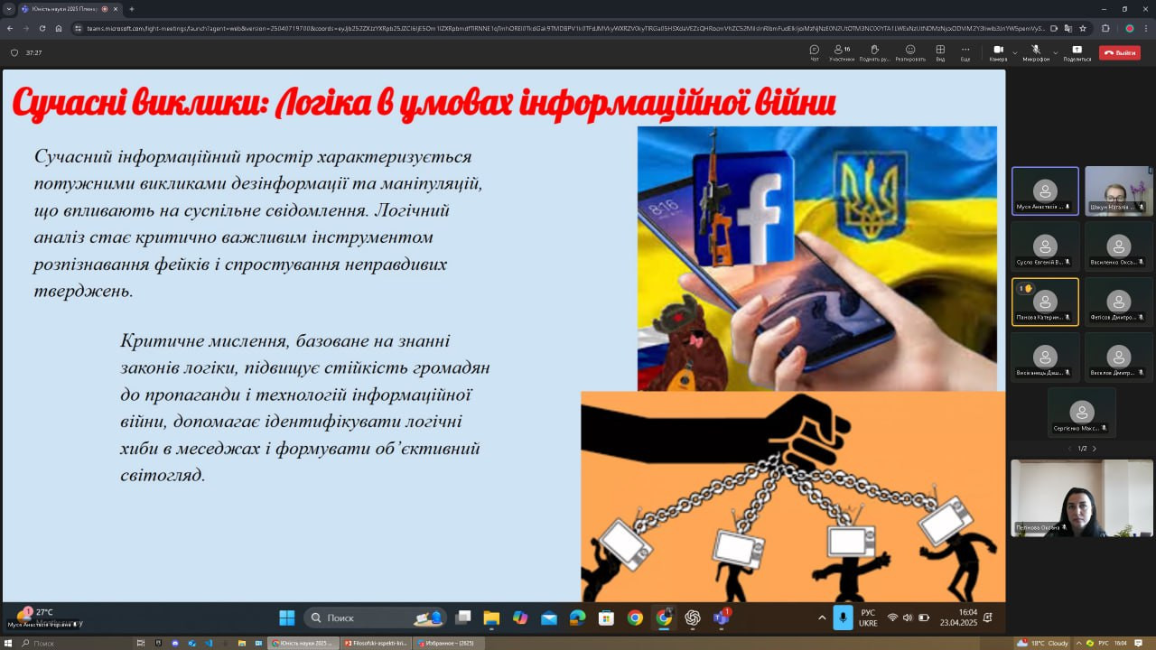 Кафедра активно підтримує та реалізує договори про співпрацю із ЗВО-партнерами. 23 квітня 2025 року молоді вчені – здобувачі вищої освіти різних рівнів представили наш університет на ХV Міжнародній науково-практичній конференції студентів, аспірантів та молодих учених «Юність науки – 2025», яка відбулася в Національному університеті «Чернігівська політехніка».Гарант ОНП «Філософія» проф. Оксана Петінова виступила на відкритті гуманітарної секції з вітальним словом, а також разом із доц. Ольгою Нестеровою (НТУ «Дніпровська політехніка, ЗВО-партнер») презентували доповідь на тему «Філософські аспекти критичної педагогіки Пауло Фрейре в контексті академічної доброчесності здобувачів освіти». Аспіранти ОНП «Філософія» підготували наукові розвідки відповідно до тем своїх дисертаційних досліджень (Віолета Світлицька, Сергій Карастан, Ігор Усатюк). Вітаємо з успішними виступами студентів факультету початкового навчання, членів студентського наукового гуртка «Південноукраїнські наукові студії» (керівник – проф. Оксана Петінова):
