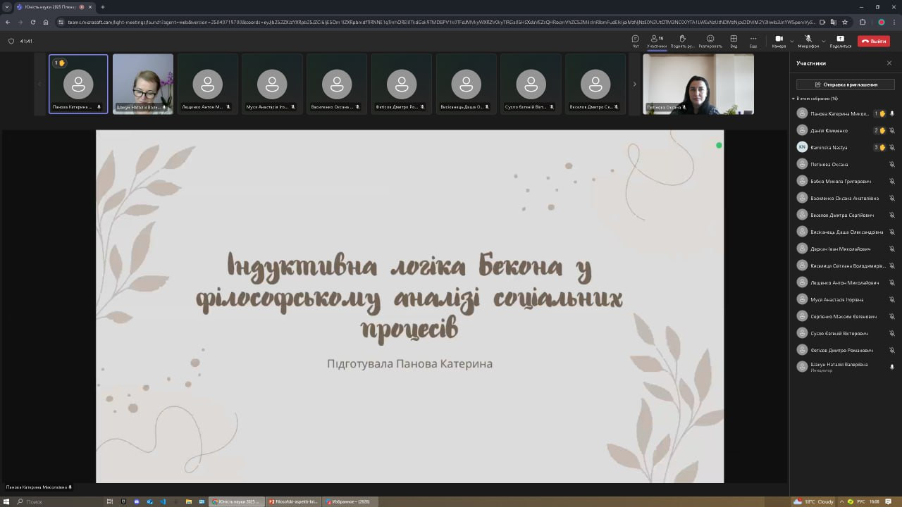 ✨ Катерину Панову, 2 курс («Індуктивна логіка Бекона у філософському аналізі соціальних процесів»);