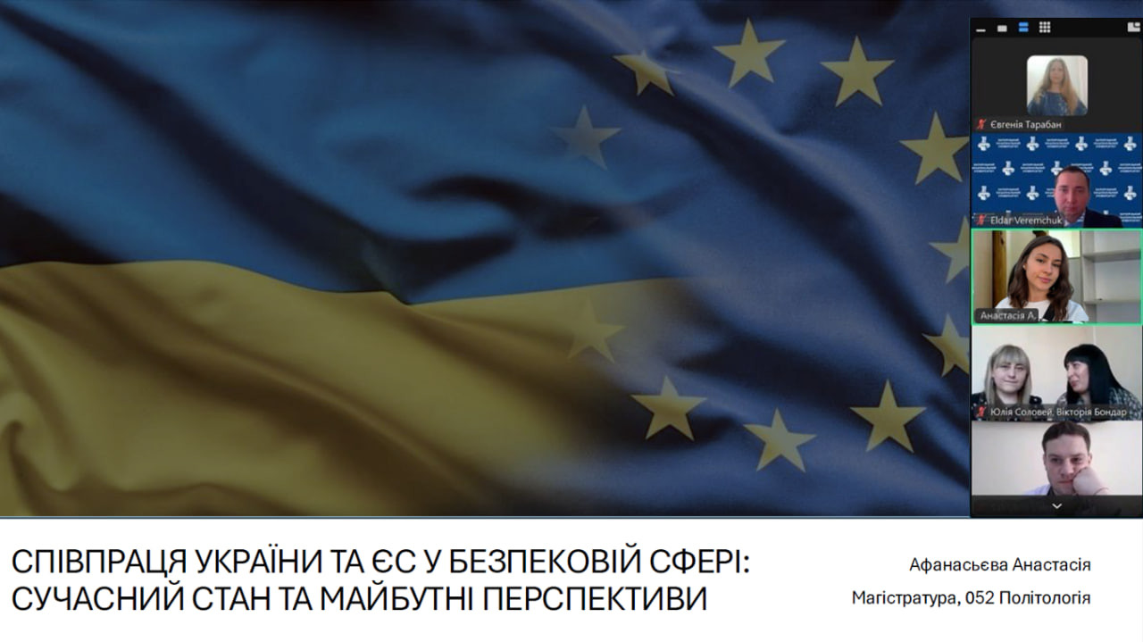 ▪️ Анастасія Афанасьєва, «Співпраця України та ЄС у безпековій сфері: сучасний стан та майбутні перспективи» (магістрантка 1 курсу).