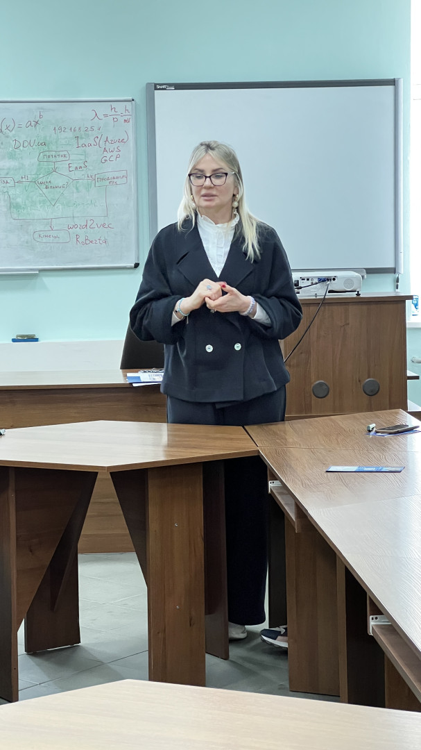 Декан Соціально-гуманітарного факультету, доктор психологічних наук, професор Оксана ВДОВІЧЕНКО більш детально ознайомила учасників заходу з напрямками підготовки та освітньо-професійними програмами факультету, кафедрами, що забезпечують навчальний процес, умовами вступу, включно з алгоритмом подачі документів, етапами вступної кампанії та вимогами до абітурієнтів, особливостями організації навчального процесу, тривалістю та структурою навчання, можливостями академічної мобільності та практичної підготовки.
