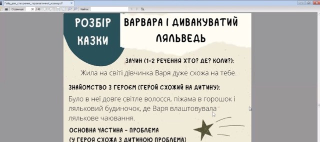 Під час зустрічі лекторка поділилася зі здобувачами освіти тонкощами технології написання терапевтичної казки. У фокусі були ключові питання: Які бувають види та форми терапевтичних казок? Як побудувати структуру сюжету? Яким повинен бути головний герой і як обирати його характеристики? Які етапи проходить герой у своїй подорожі, кого зустрічає на шляху, як змінюється і чого навчається? Які функції виконує казка в терапевтичному процесі та який вплив може мати на читача чи слухача?