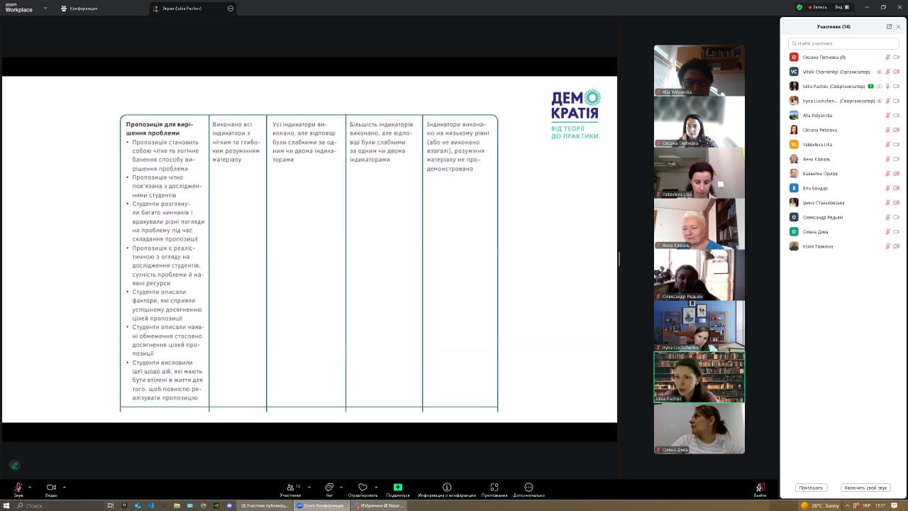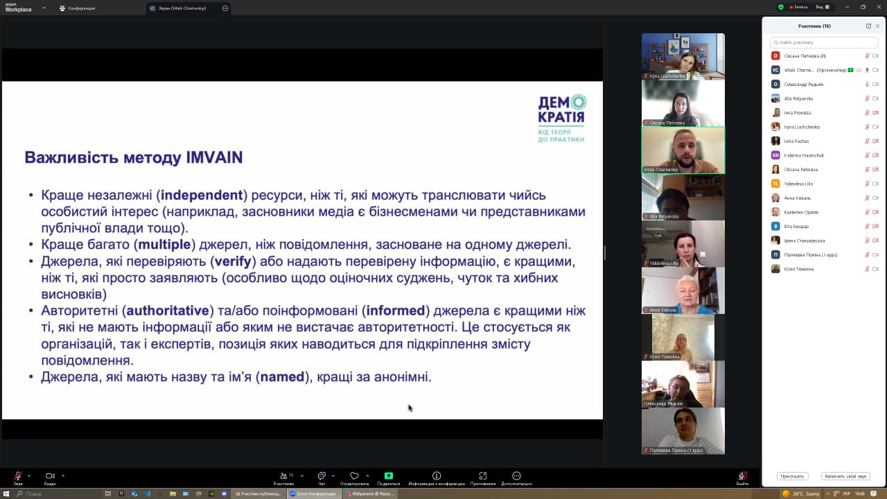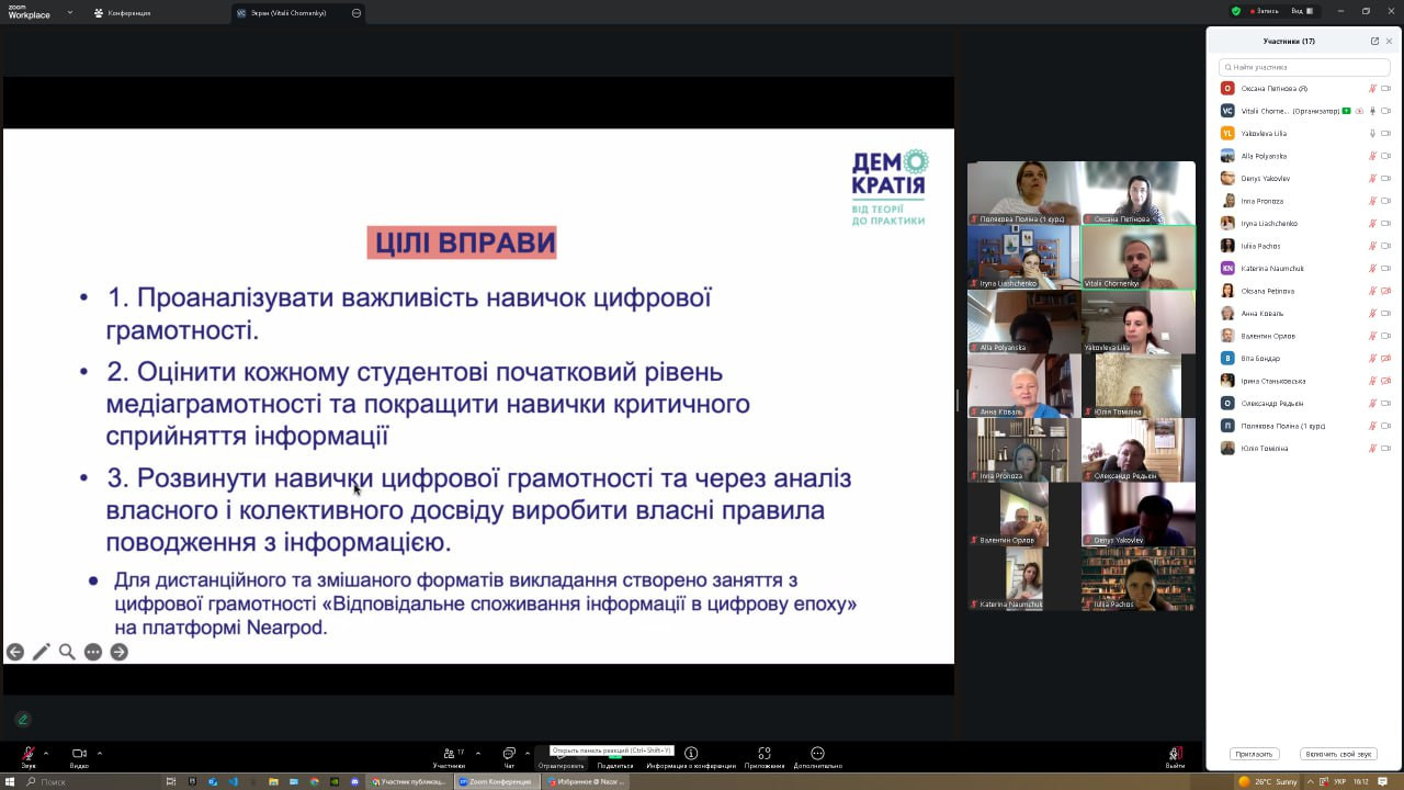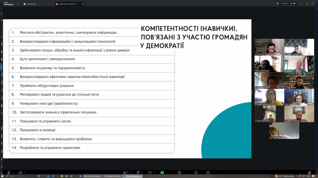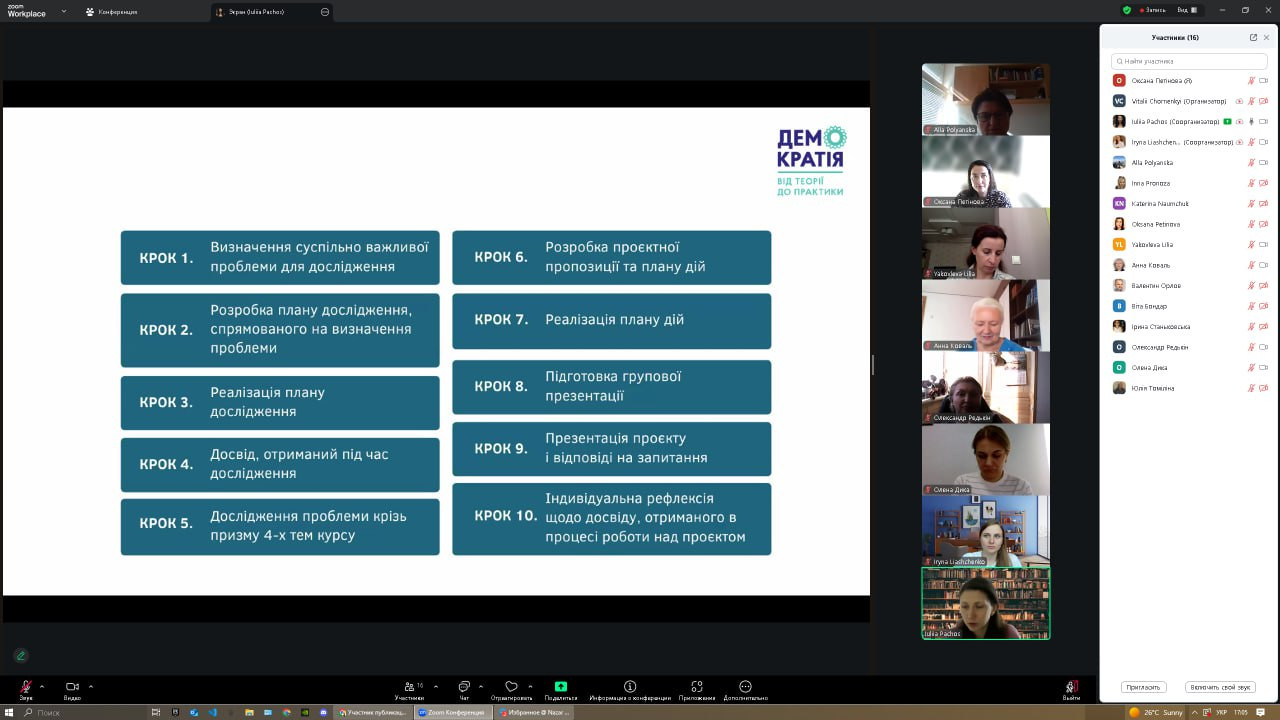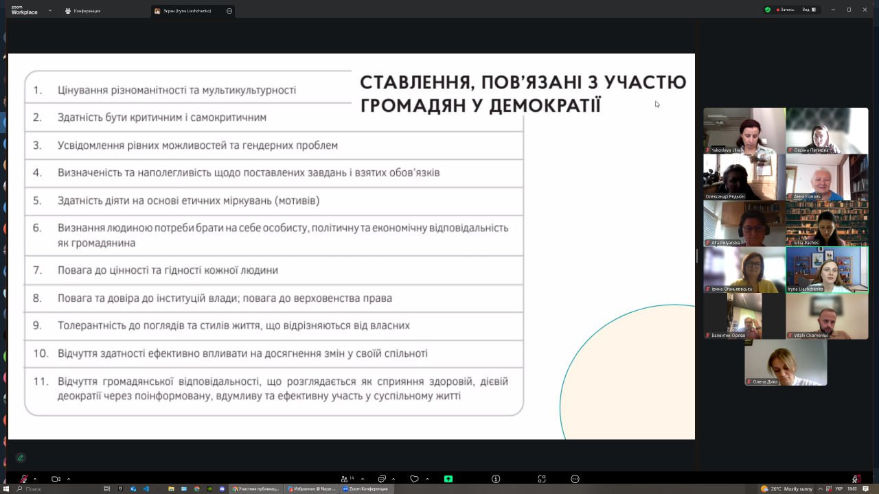 28 серпня та 4 вересня 2025 року відбулися інтенсиви-тренінги в межах міжнародної програми «Democracy: from theory to practice», організовані ГО «Асоціація викладачів громадянської освіти». Участь взяли понад 20 представників ЗВО України, серед яких науково-педагогічні працівники Університету Ушинського – проф. Оксана Петінова та доц. Інна Проноза. Академічна мобільність у межах проєкту IFES, що завершилася у червні, продовжилася підготовкою до практичної реалізації її результатів через впровадження курсу «Демократія: від теорії до практики» в освітній процес. Влітку учасники працювали над пілотним командним проєктом «Відсутність освітлення на вулиці Валер’яна Поліщука», який став прикладом дослідження суспільно значущої проблеми та пошуку шляхів її вирішення. У програмі тренінгів: ✔ інтерактивні методики викладання курсу громадянської освіти; ✔ метод IMVAIN та практика відповідального споживання інформації в цифрову епоху; ✔ покрокова робота над студентським проєктом – від визначення суспільної проблеми до її презентації та індивідуальної рефлексії.