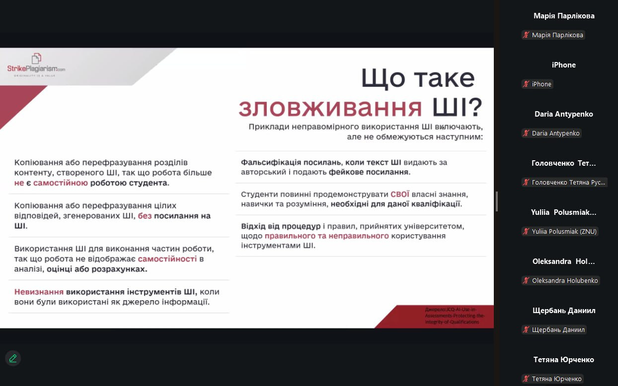Учасники отримали корисну інформацію щодо використання системи StrikePlagiarism.com у практиці забезпечення академічної доброчесності в Університеті Ушинського, а також навички як зробити ШІ-контент оригінальним.