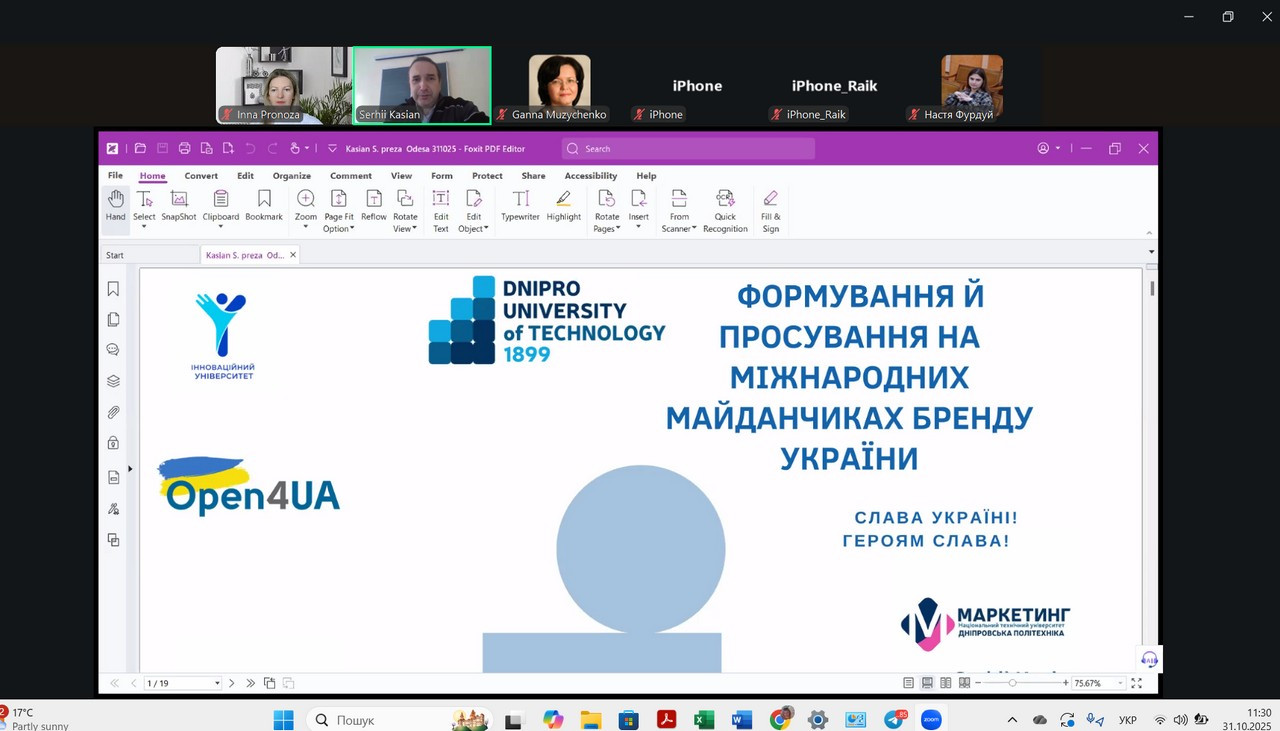 31 жовтня 2025 року в Державному закладі «Південноукраїнський національний педагогічний університет імені К. Д. Ушинського» відбулася гостьова лекція на тему «Формування й просування на міжнародних ринках бренду України». Захід організувала кафедра політичних наук і права у співпраці з ГО «Інноваційний університет» та її Одеським і Дніпровським осередками.