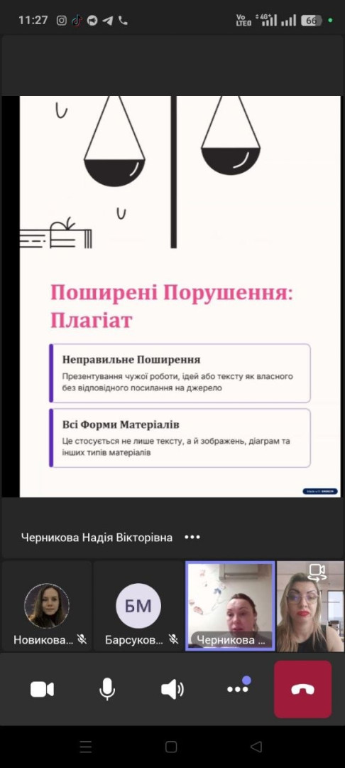 Виховний захід було присвячено особливостям академічної доброчесності, узагальненим нормативним документам. Зокрема, було ознайомлено з поняттям академічної доброчесності, її видами та відповідальністю за порушення норм академічної доброчесності.