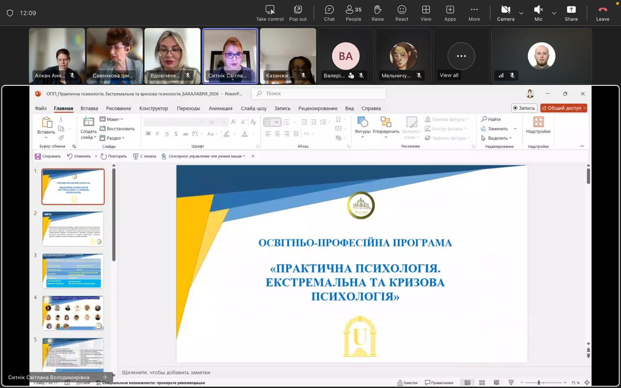 15 квітня 2026 року відбулася зустріч зі студентами 4 курсу денної та заочної форм здобуття освіти першого (бакалаврського) рівня вищої освіти за участю директора Навчально-наукового інституту психології та суспільних наук Оксани Вдовіченко, завідувачів психологічних кафедр Університету Ушинського та гарантів освітньо-професійних програм: «Практична психологія. Екстремальна та кризова психологія» (професор Світлана Ситнік), «Клінічна психологія» (професор Ірина Савенкова), «Прикладна і практична психологія» (професор Микола Дідух).