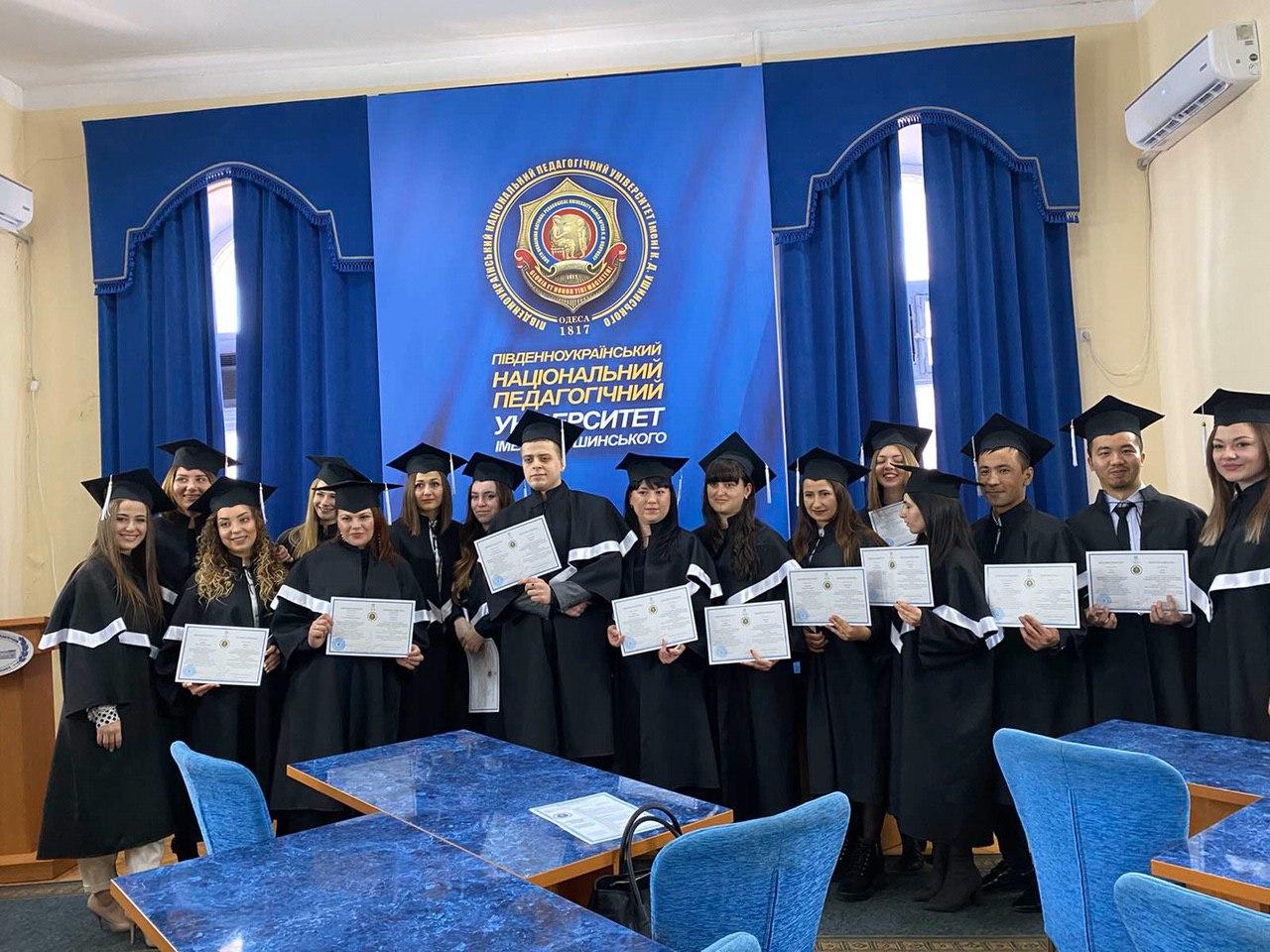 Дипломи випускникам кафедри освітнього менеджменту та публічного управління Університету Ушинського вручили перший проректор Копусь О. А. та завідувач кафедри Долженков О.О.