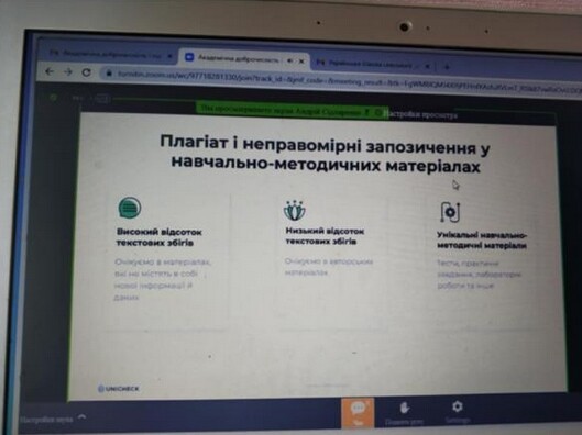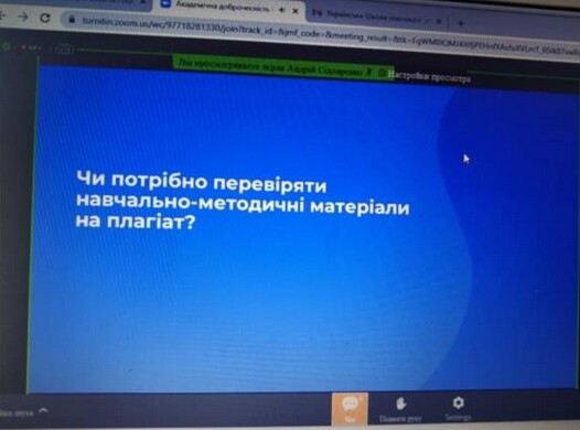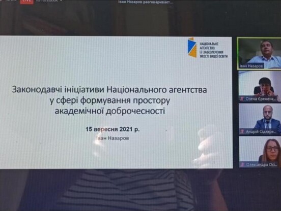 15 вересня 2021 року відбувся вебінар "Академічна доброчесність у закладах вищоі освіти" fShare 15.09.21 Викладачі кафедри прийняли участь у вебінарі "Академічна доброчесність у закладах вищоі освіти". Виступали спікери Національного Агенства із забезпечення якості вищоі освіти: Іван Назаров, Андрій Сідляренко, Олена Єременко.