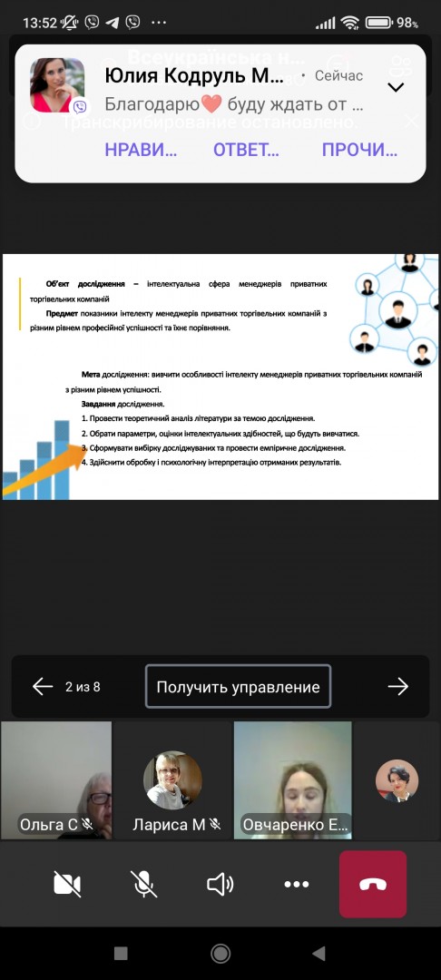 «Диференціальний підхід у дослідженні професійного самоздійснення особистості». Виступали магістри, які презентували тези доповідей, що висвітлюють висновки наукових досліджень з психології. Зазначено високий рівень якості професійної підготовки майбутніх фахівців.