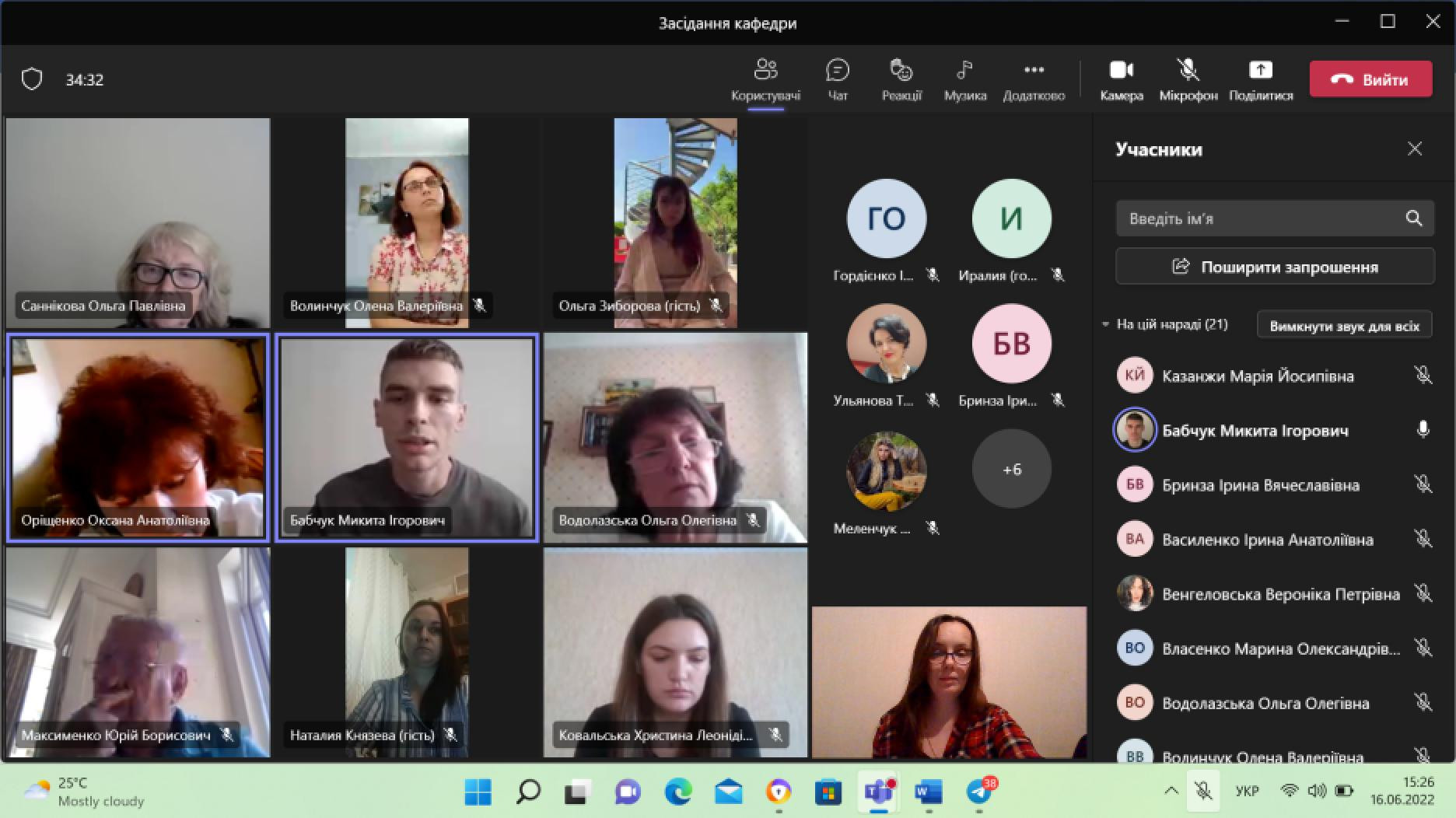 16 червня 2022 року на засіданні кафедри загальної та диференціальної психології відбувся звіт здобувачів третього (освітньо-наукового) рівня вищої освіти за спеціальністю 053 Психологія.