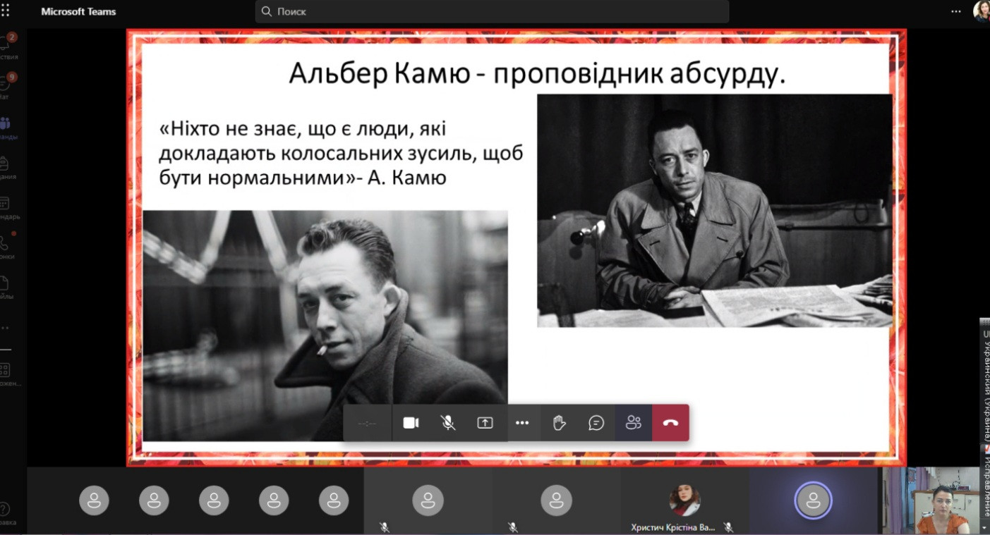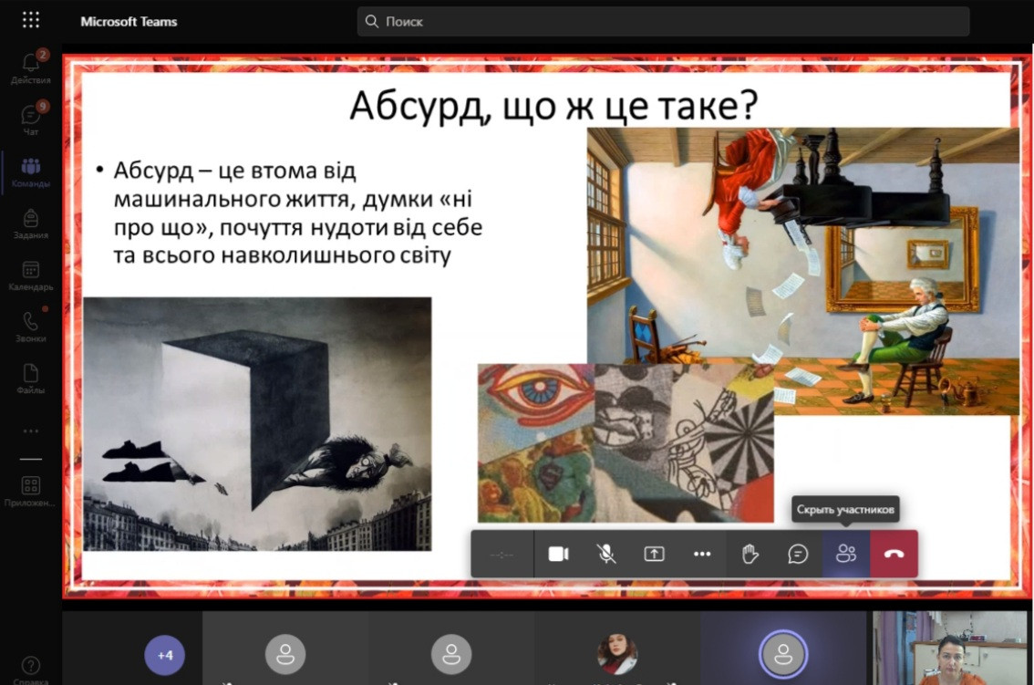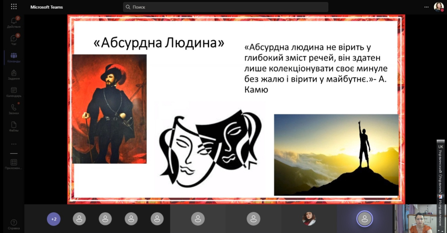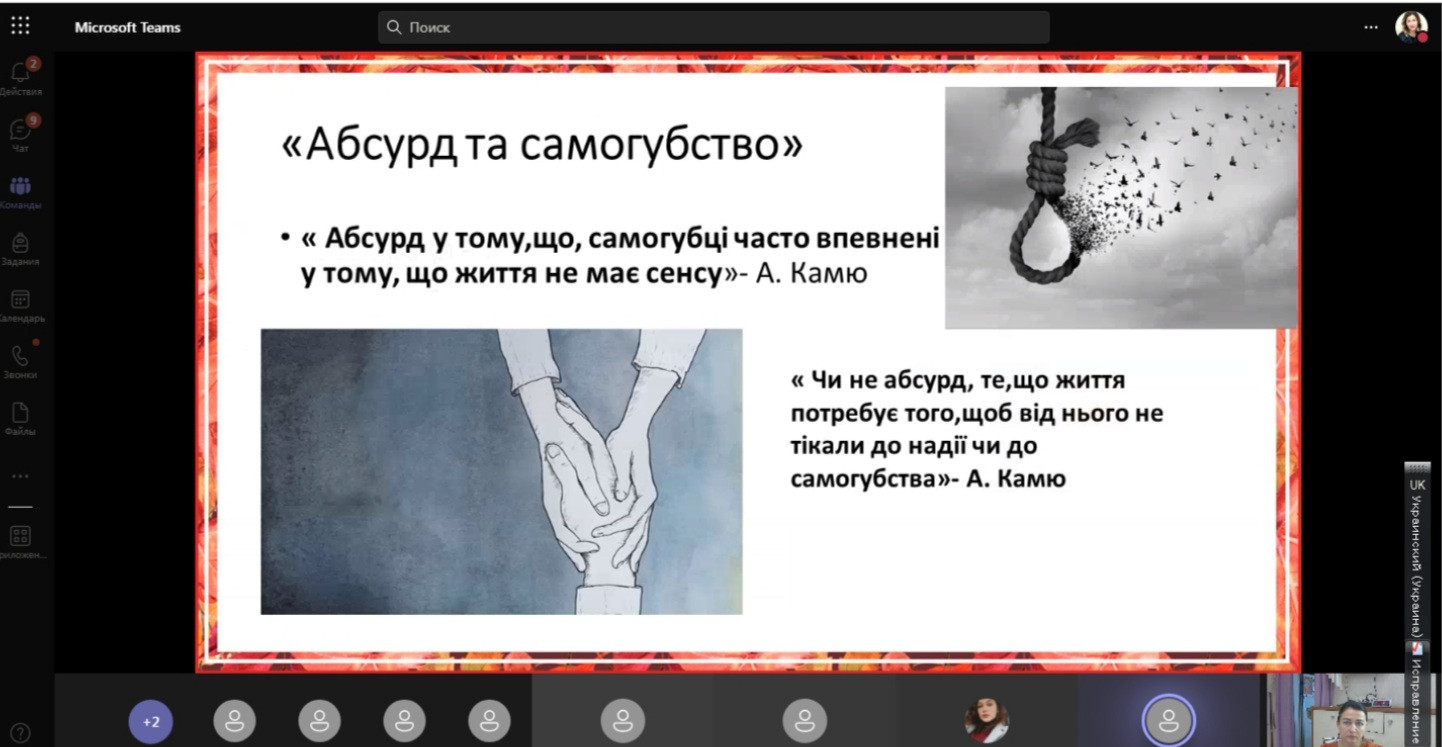 29 червня 2022 року відбулося останнє у 2021 – 2022 навчальному році засідання наукового гуртка «Південноукраїнські наукові студії», на якому були підведені підсумки роботи за рік. З презентаціями виступили студенти 1 курсу факультету початкового навчання, тема для обговорення: «Абсурд вчора та сьогодні: філософська рефлексія». Розглянуто питання сутності та значення абсурду на прикладі творів А. Камю «Чума» та «Міф про Сізіфа», та проаналізовано війну як абсурд ХХІ століття. Виступили всі бажаючі та висловили свої думки й власні позиції з цієї проблеми.