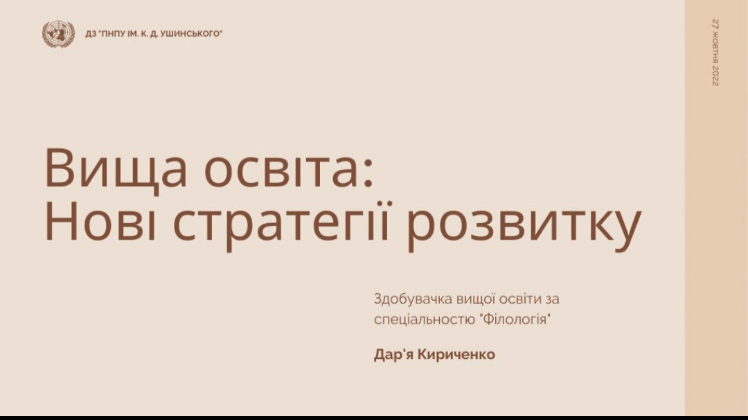 27 – 28 жовтня 2022 року науково-педагогічні працівники кафедри філософії, соціології та менеджменту соціокультурної діяльності (проф. Євген Борінштейн, доц. Зоя Атаманюк, доц. Галина Врайт, викл. Лариса Самчук) взяли участь у Всеукраїнській науково-практичній конференції «Інновації в освіті: сутність, проблеми, перспективи», що була організована кафедрою філософії, політології, психології та права Одеської державної академії будівництва та архітектури. На пленарному засіданні виступила проф. Оксана Петінова з темою «Апокаліпсис ХХІ століття та перспективи розвитку філософії освіти». На секційних заняттях свої доповіді представили студенти спеціальностей 028 Менеджмент соціокультурної діяльності Крістіна Данильчук «Модернізація системи соціальної підтримки дітей-сиріт і дітей, позбавлених батьківського піклування» та Ніколь Гавриш «Стан організації соціокультурних проєктів для сімей в Україні» (наук. керівник викл. Лариса Самчук). Аспірантка 1-го року навчання (ОНП Філософія) Віолета Світлицька представила результати своєї наукової розвідки на тему «Інноваційні технології викладання гуманітарних наук у вищих навчальних закладах з урахуванням гендерних аспектів».