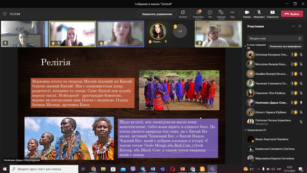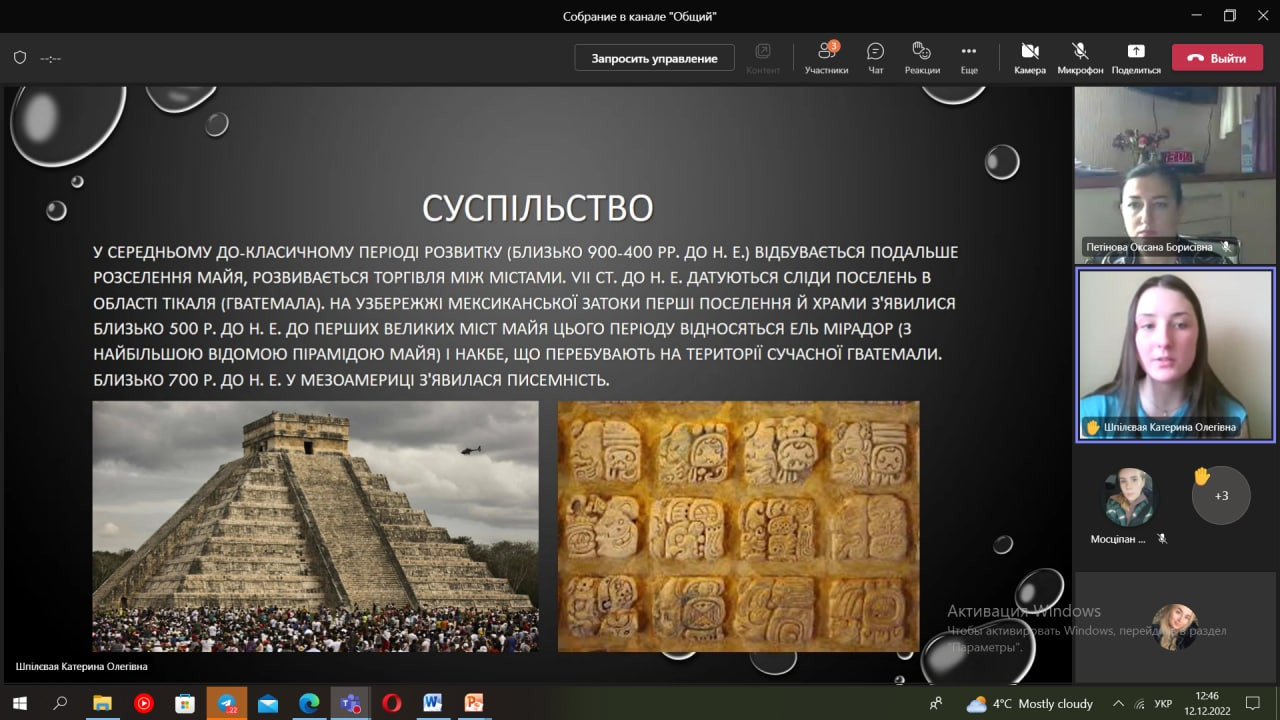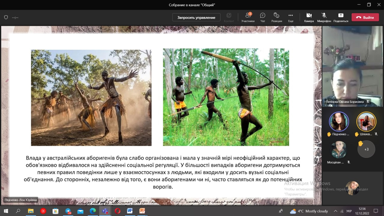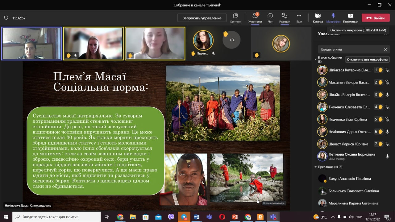 Відбулося останнє засідання студентського наукового гуртка «Південноукраїнські наукові студії» 2022 року (керівник – проф. Петінова О. Б.). Секція – соціологія. За бажаннями здобувачів темою засідання була обрана «Соціальна організація та соціальний контроль». Студенти підготували доповіді та презентації, зокрема, проаналізували особливості соціальної організації та соціального контролю племен майя, масаїв, австралійських аборигенів, Стародавнього Єгипту. Виступили – Дар’я Неліпович, Єлизавета Педченко, Валерія Швайка, Лариса Шелест та Катерина Шпілєвая.